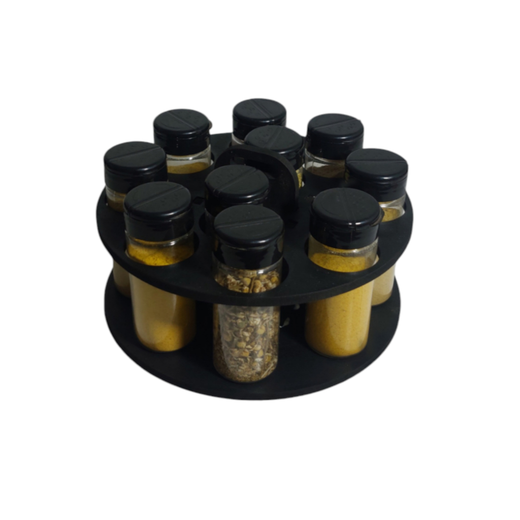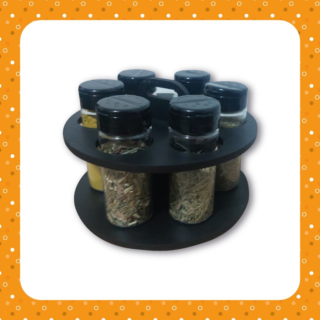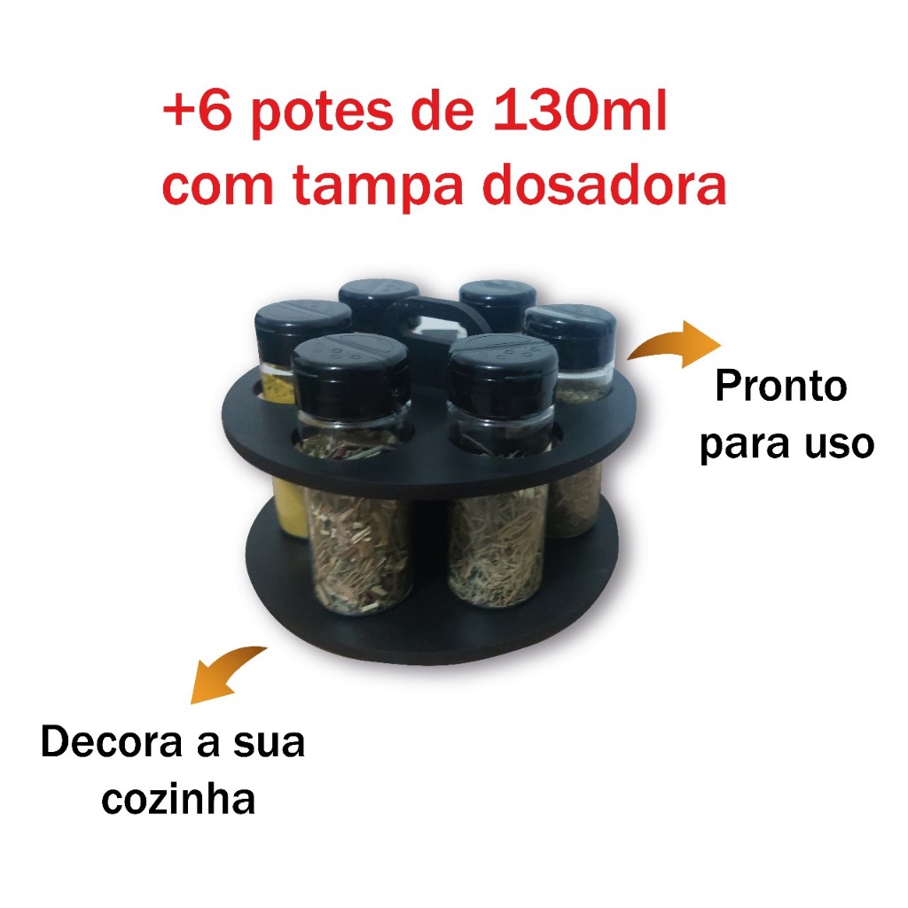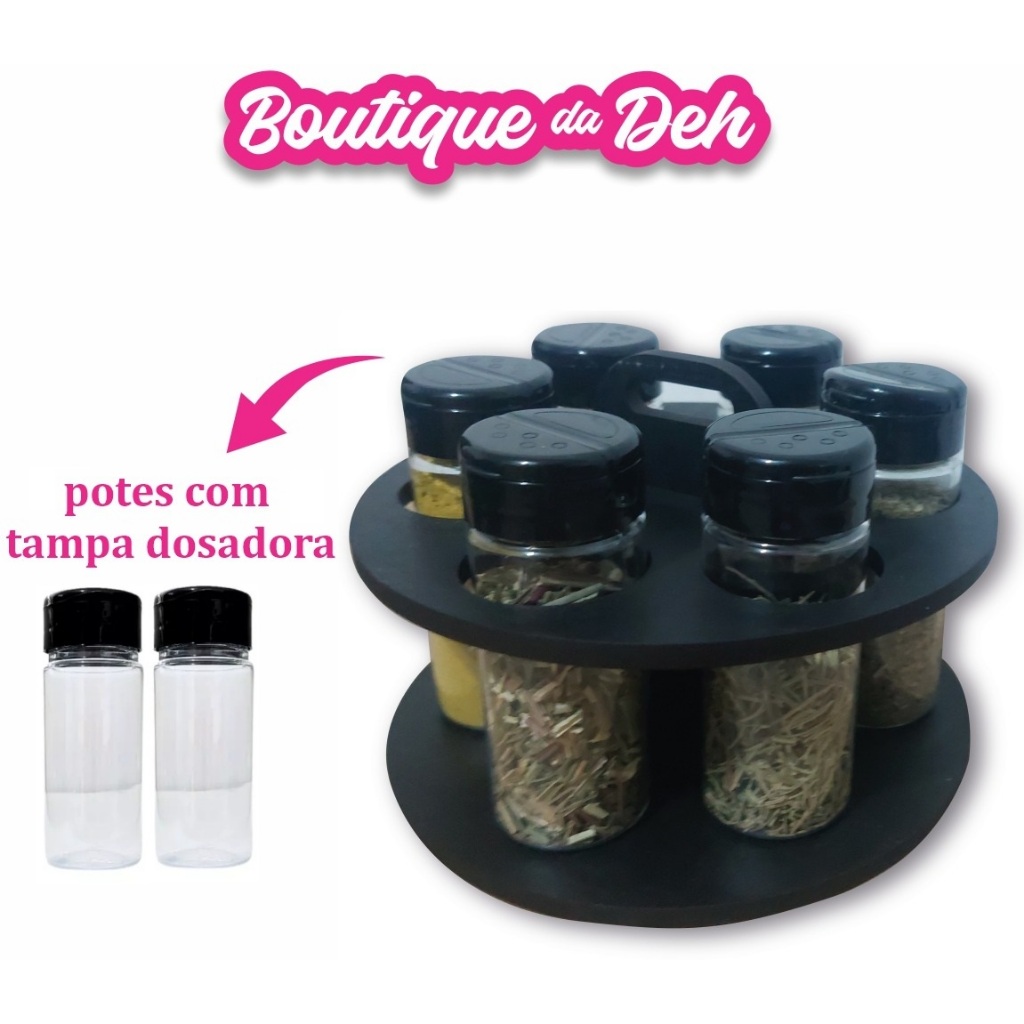 Porta Temperos Condimentos modelo Redondo Com Kit de Potes com Tampa Dosadora