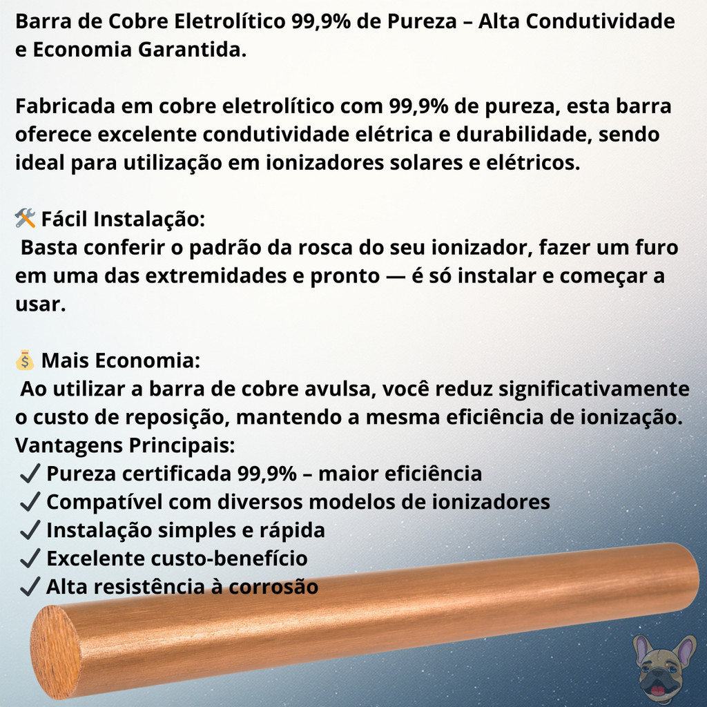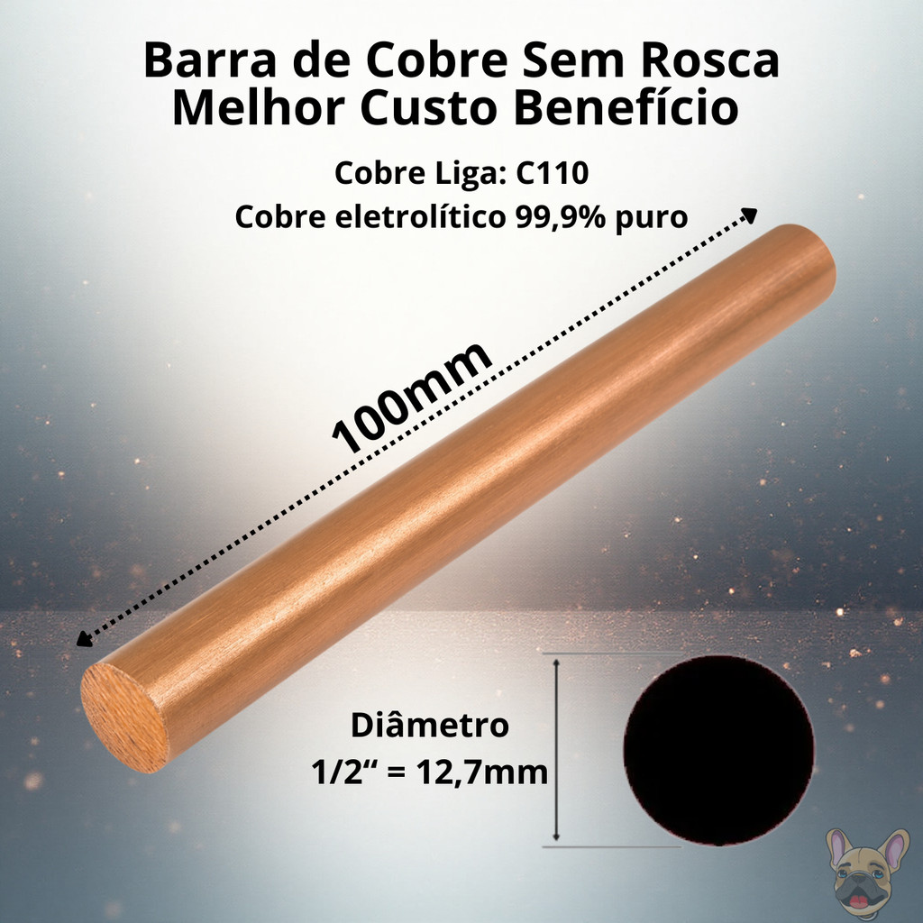 Barra Cobre 12,7mm p/ Ionizador Solar e Elétrico Piscina Dumascot