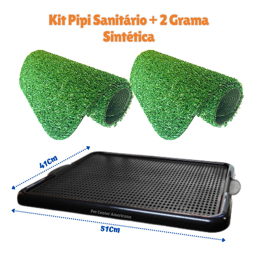 Kit 2 Refil Grama Sintética 46x36cm + Tapete Xixi Para Cães