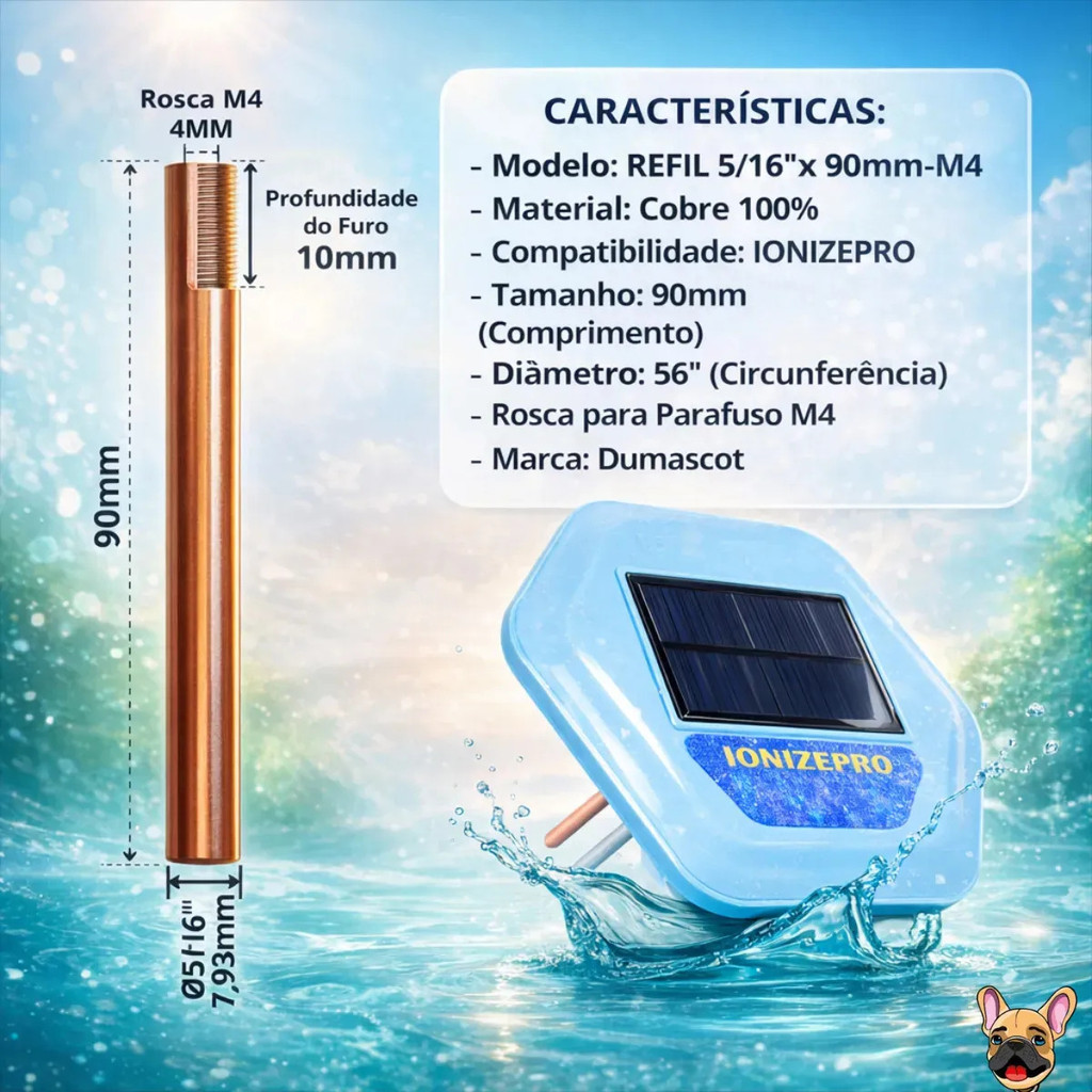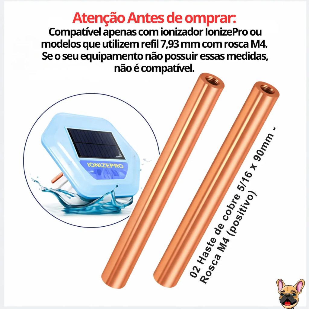 Refil Ionizador IonizePro Piscina Eletrodo de Cobre Rosca M4 Kit 2 Unidades