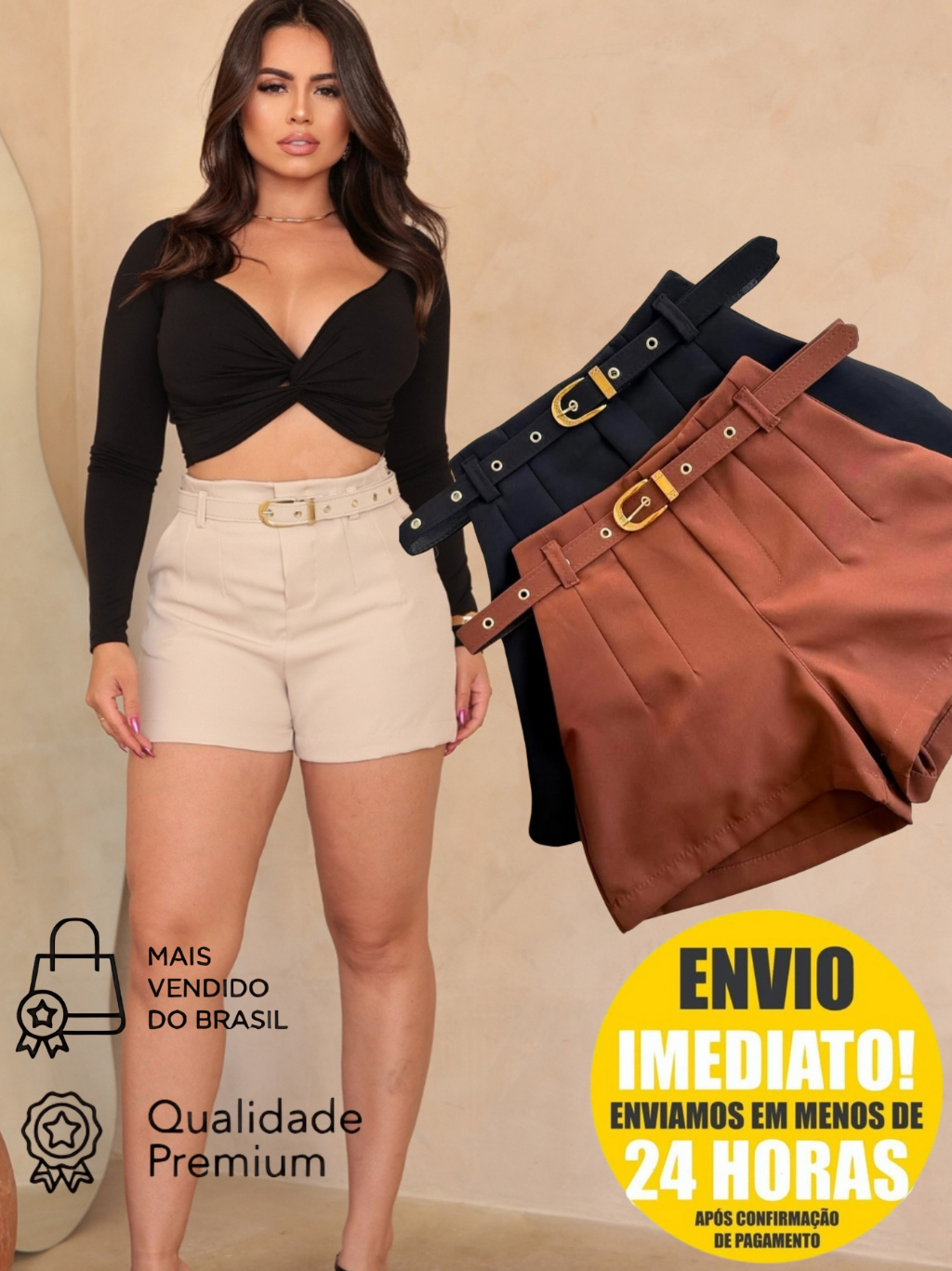 Short Alfaiataria Com Cinto Encapado Envio Imediato