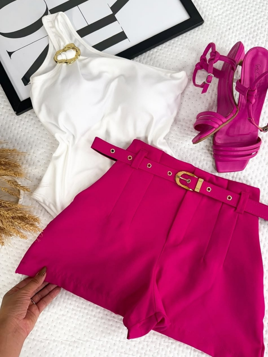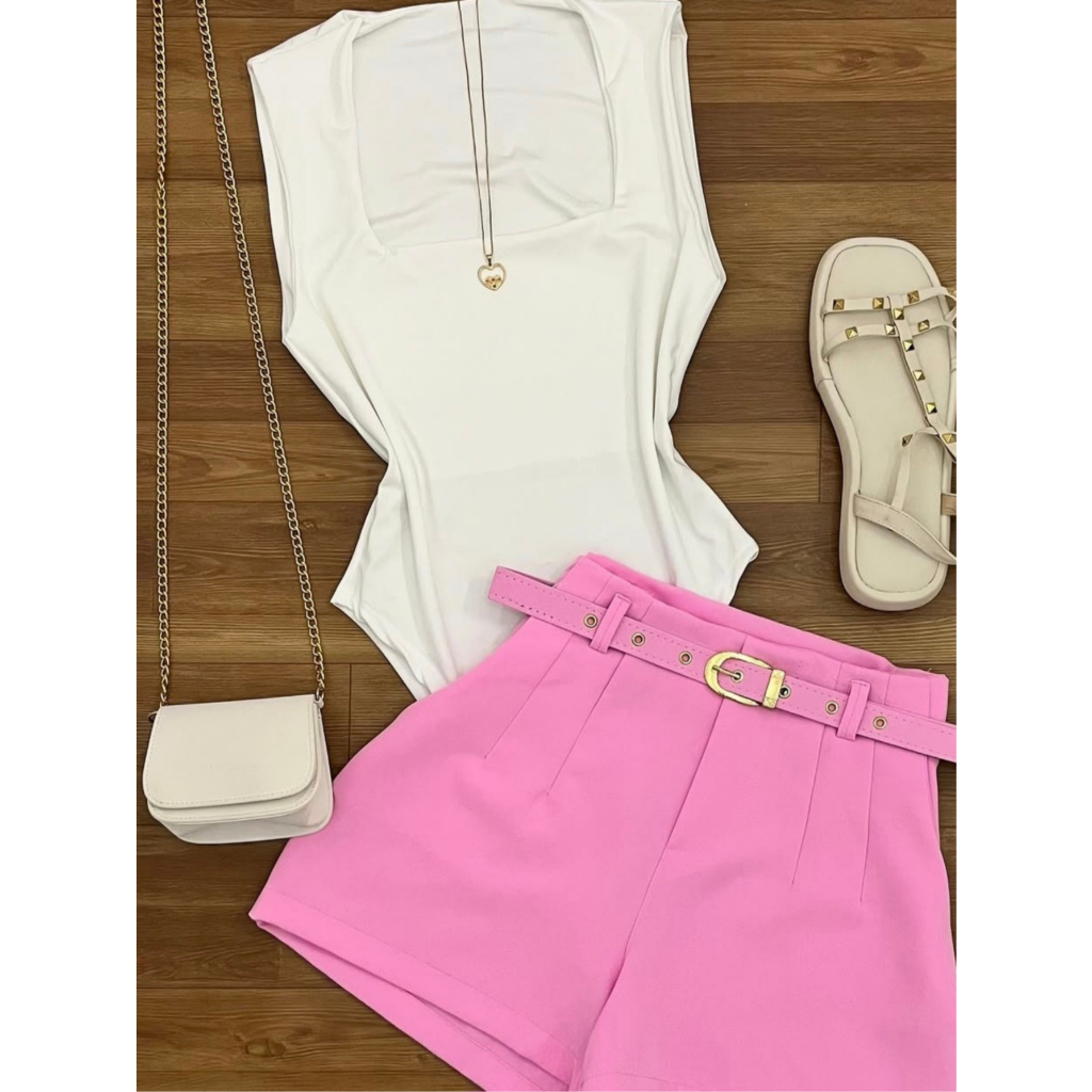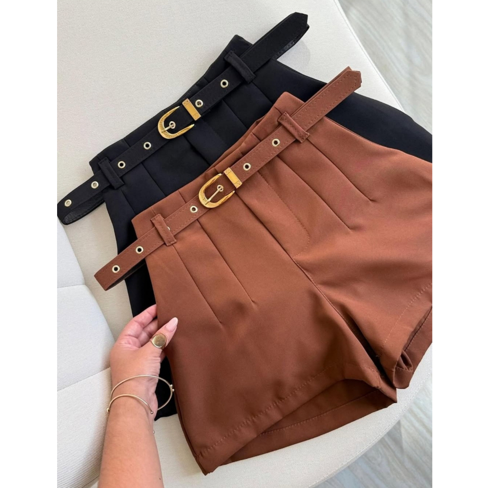 Short Feminino Social Alfaiataria Com Cinto Forrado do P ao GG