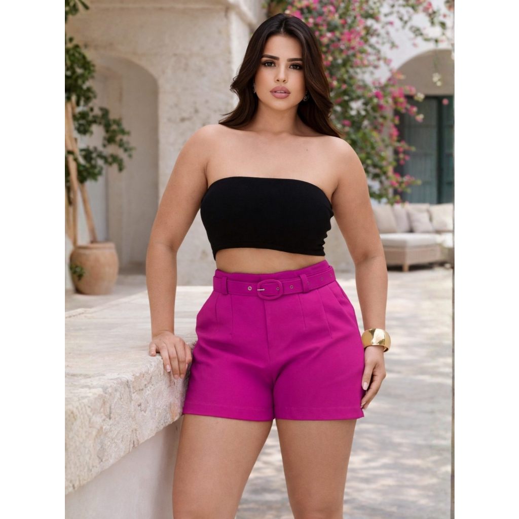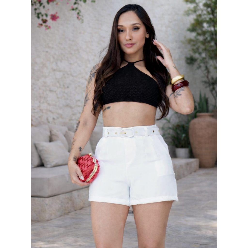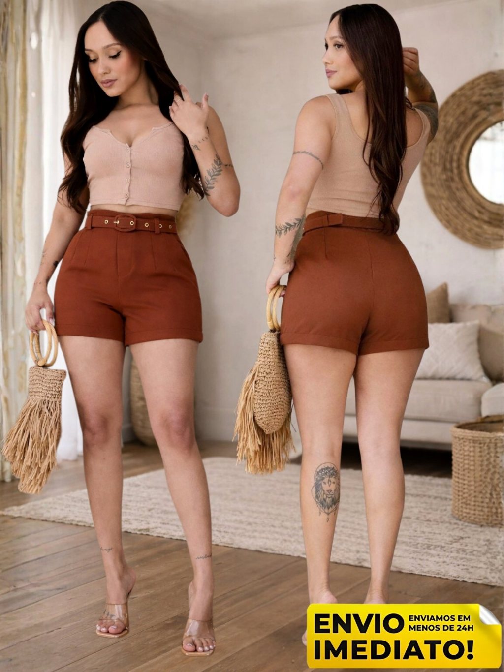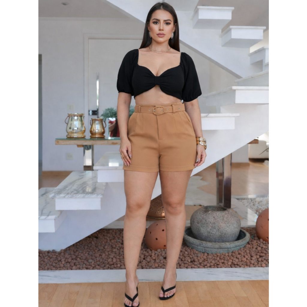 Short de Alfaiataria Feminino Acompanha Cinto Forrado