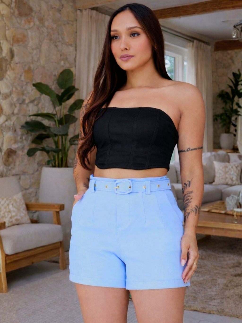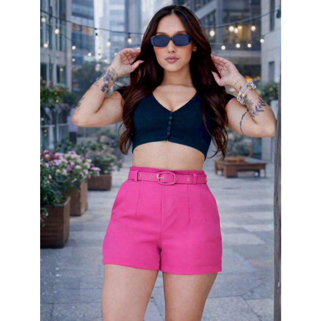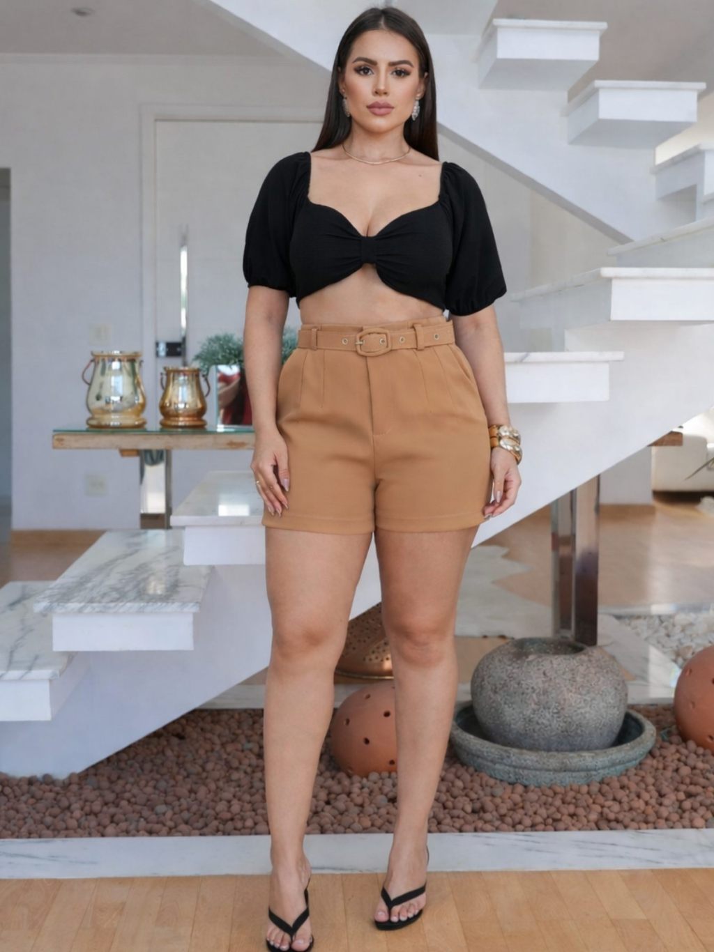 Short de Alfaiataria Feminino Acompanha Cinto Forrado