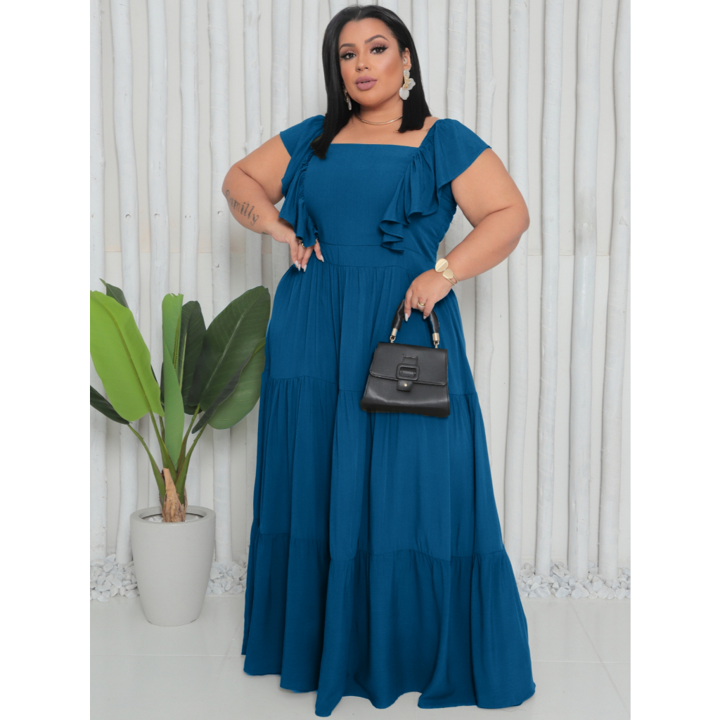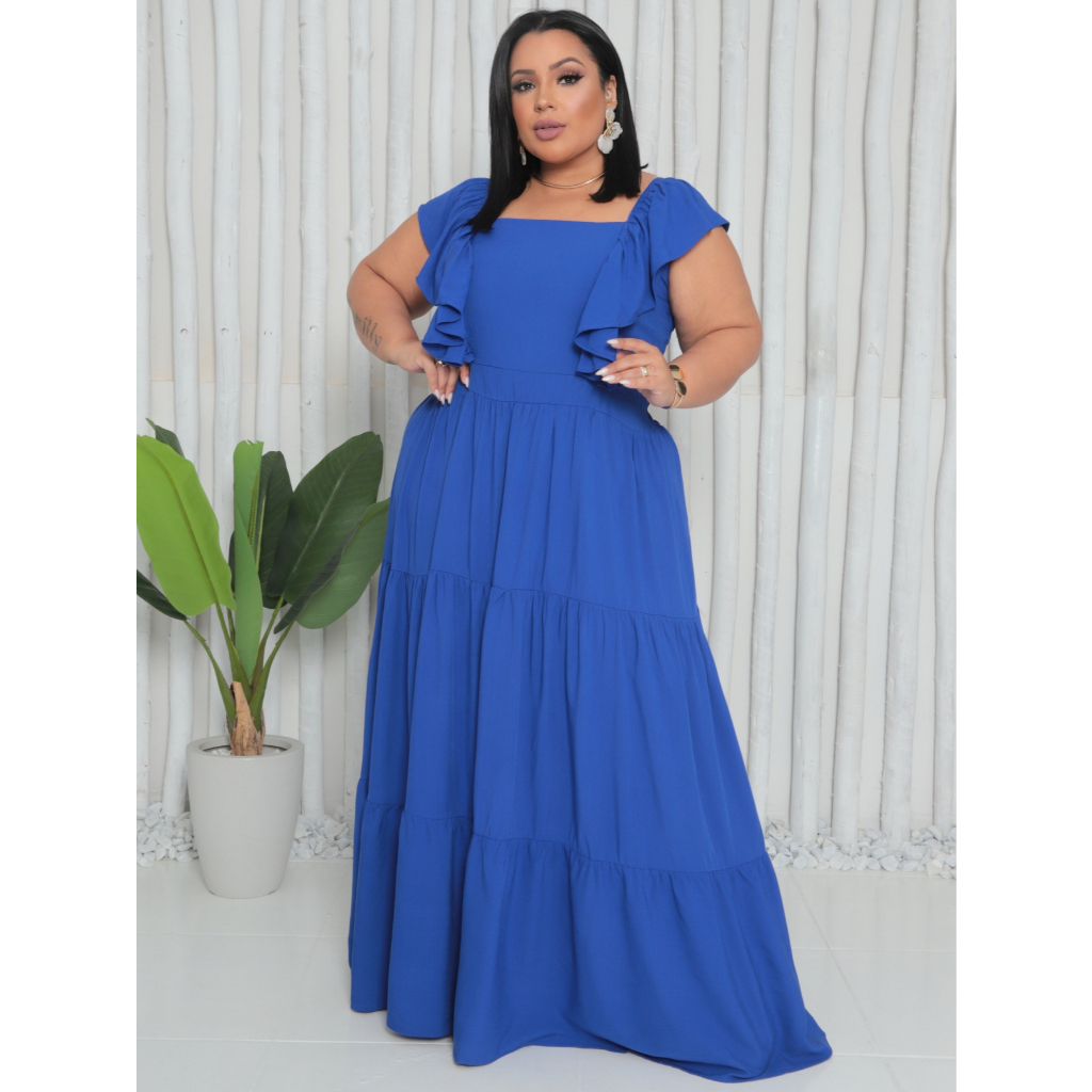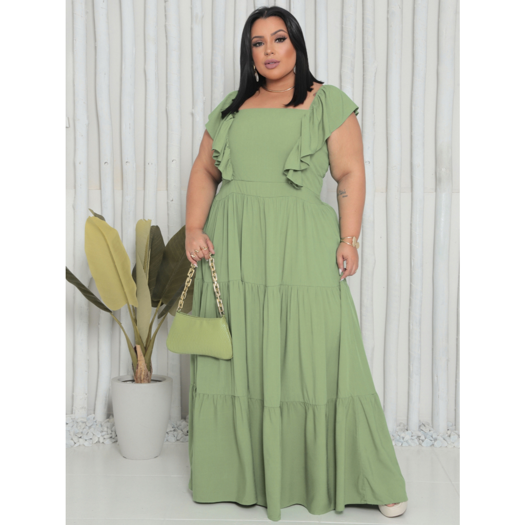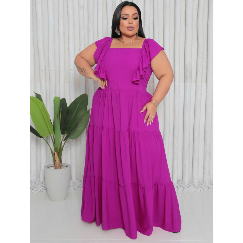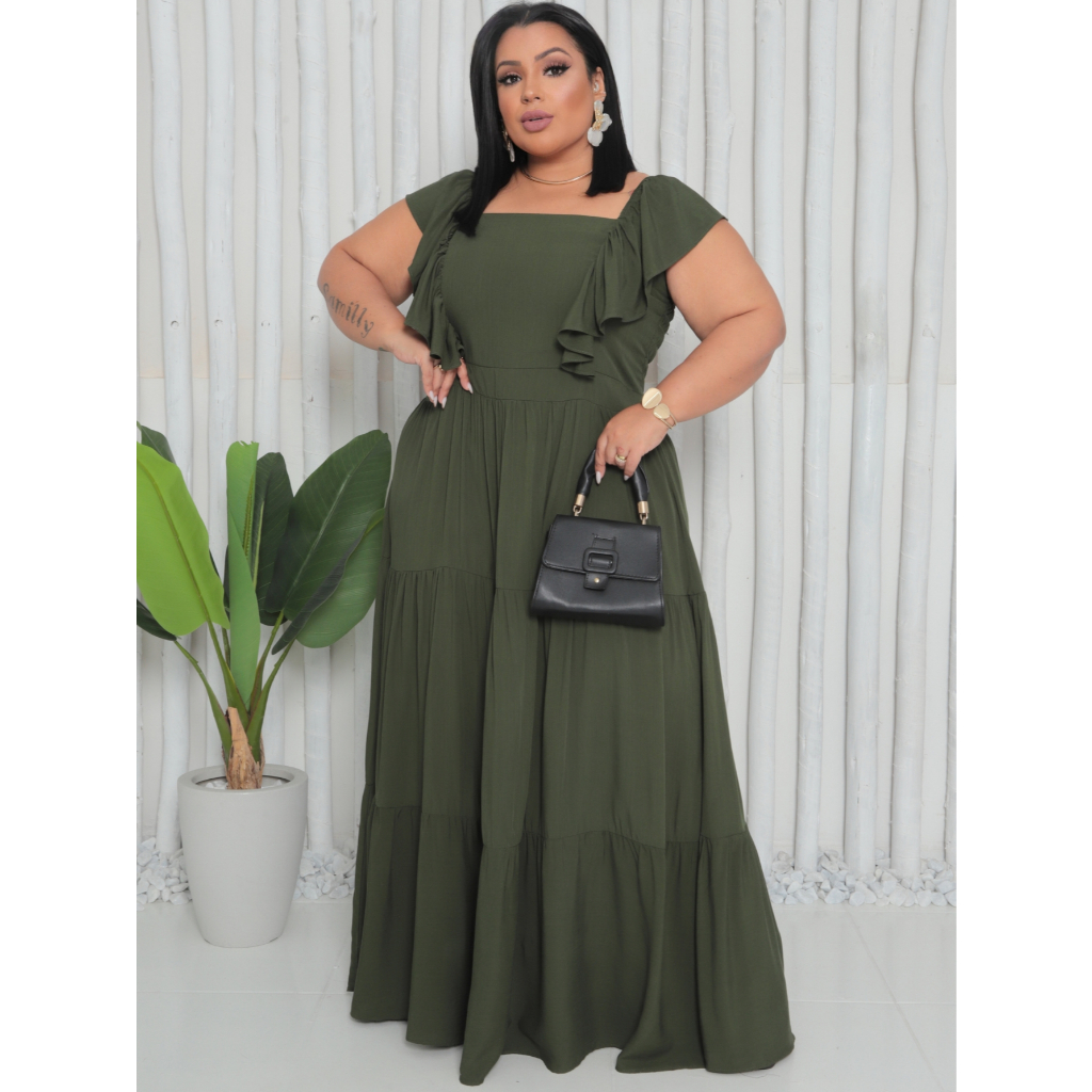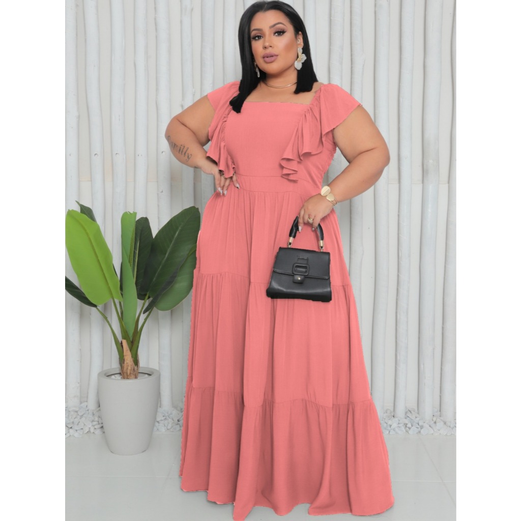 VESTIDO PLUS SIZE LONGO COM DECOTE QUADRADO MODA EVANGELICA