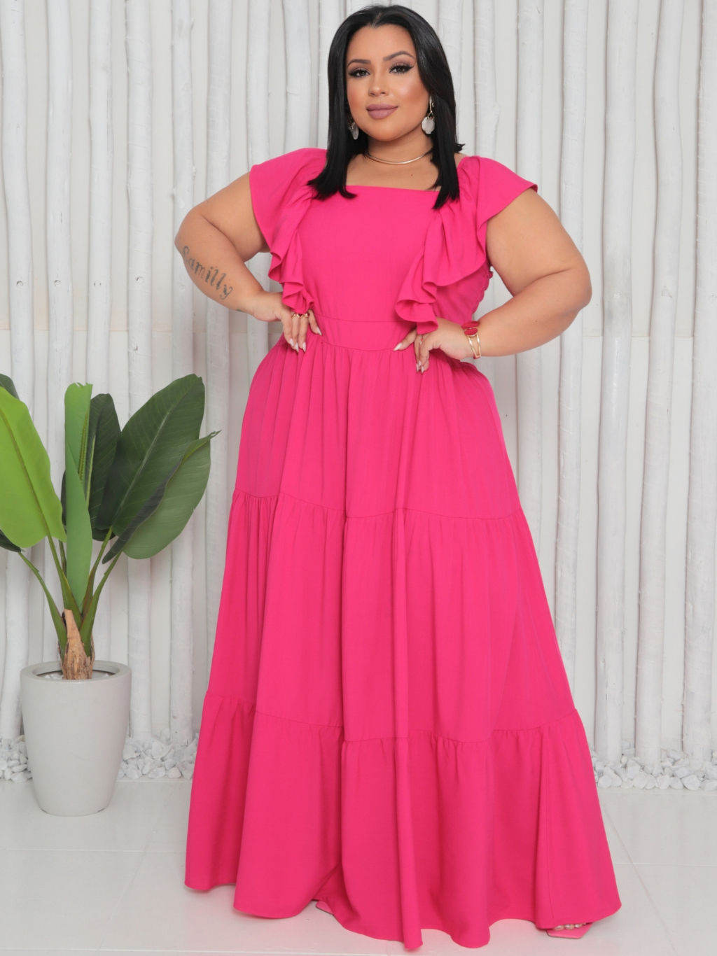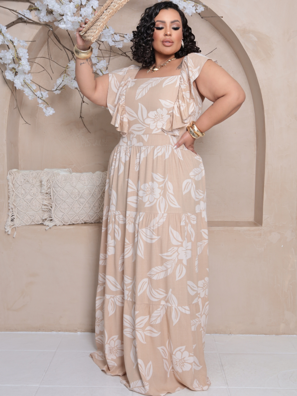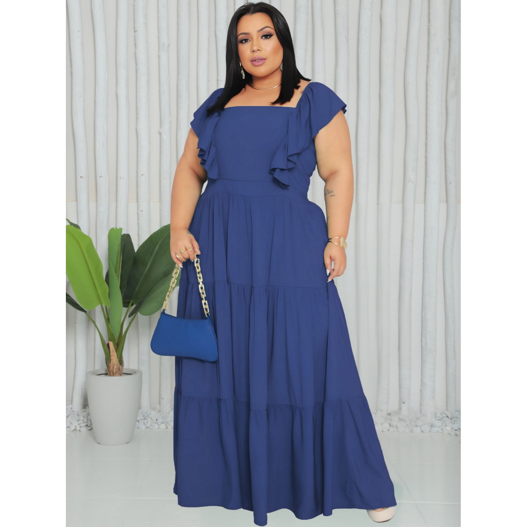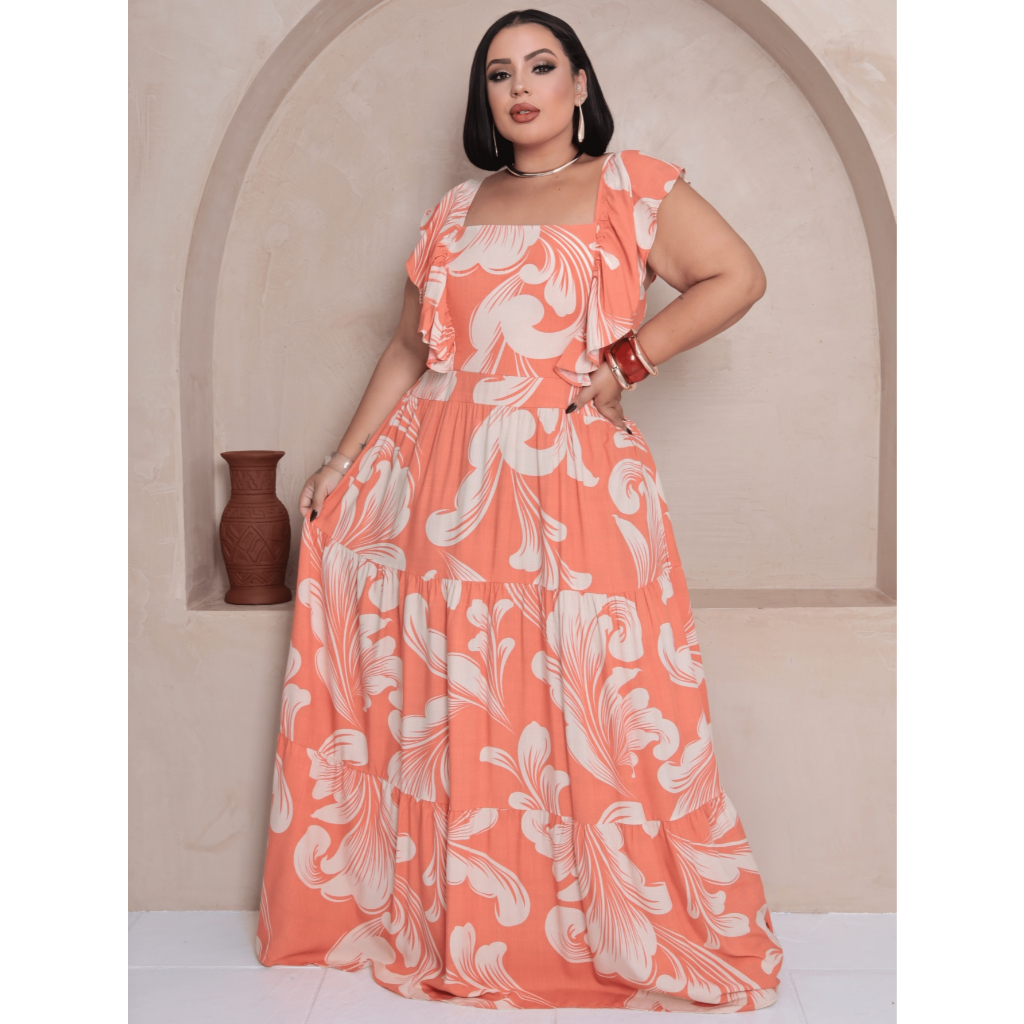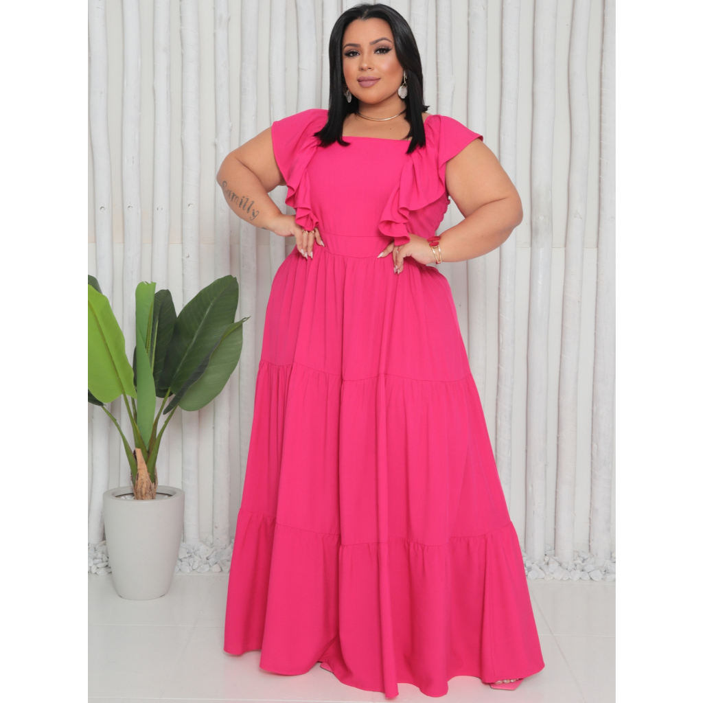 VESTIDO PLUS SIZE LONGO COM DECOTE QUADRADO MODA EVANGELICA