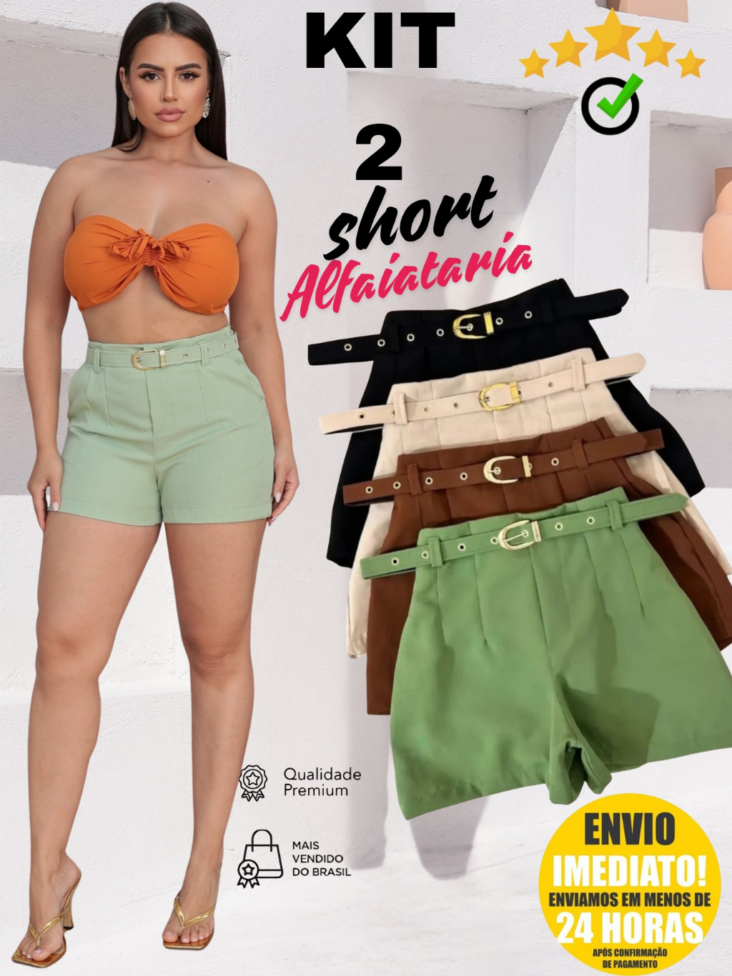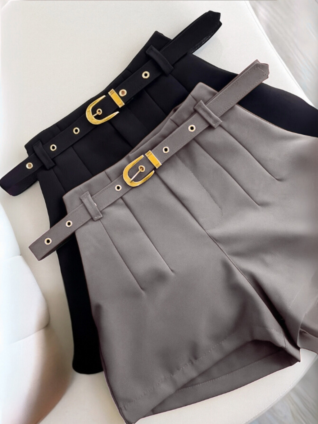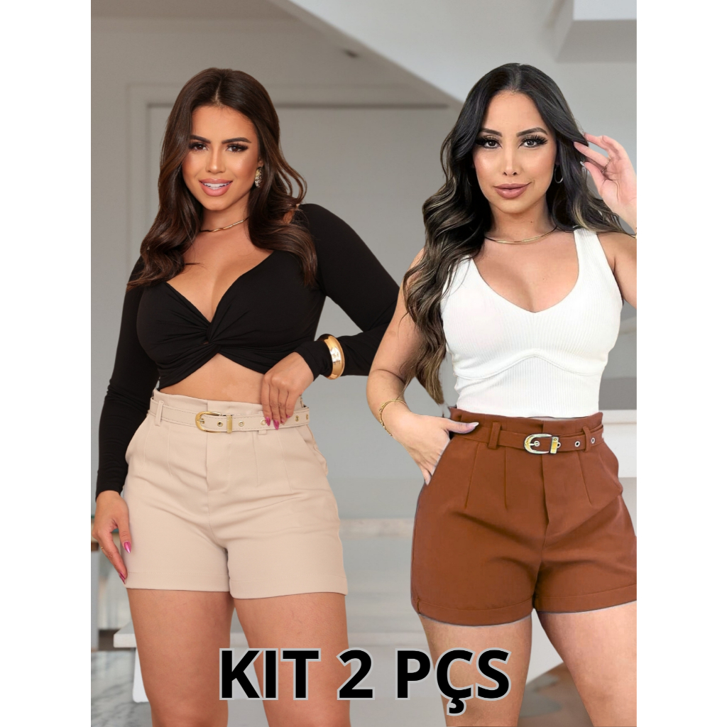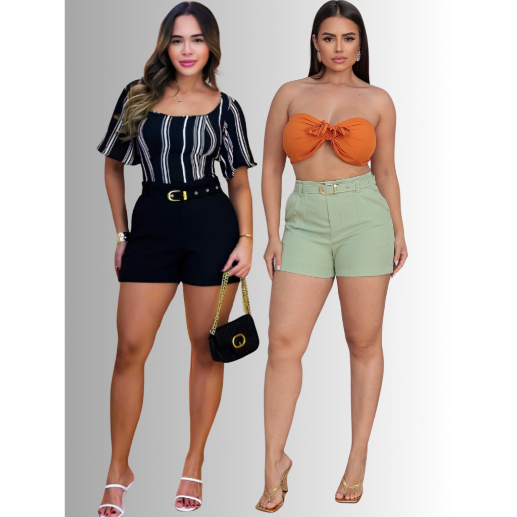 Kit 2 Shorts Feminino Alfaiataria Social Com Cinto Forrado Com Bolso ENVIO IMEDIATO