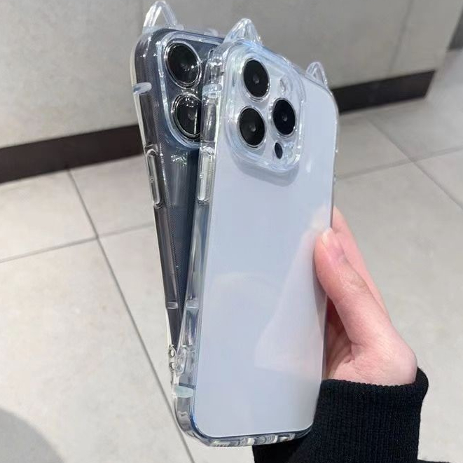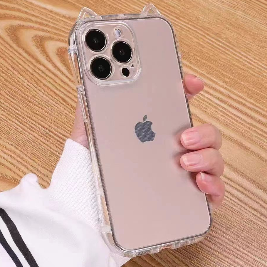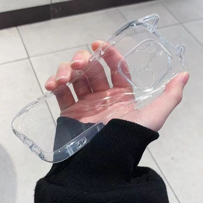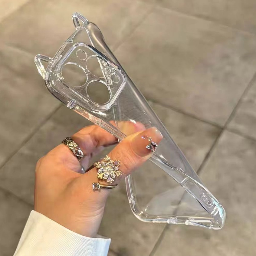 3D Transparente Orelhas De Gato TPU Macia À Prova De Choque Case Capinha Capa Para iPhone 15 14 13 12 11 Pro Max Plus X XS XR 7 8 Plus