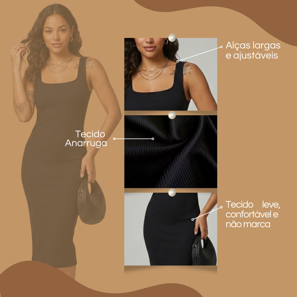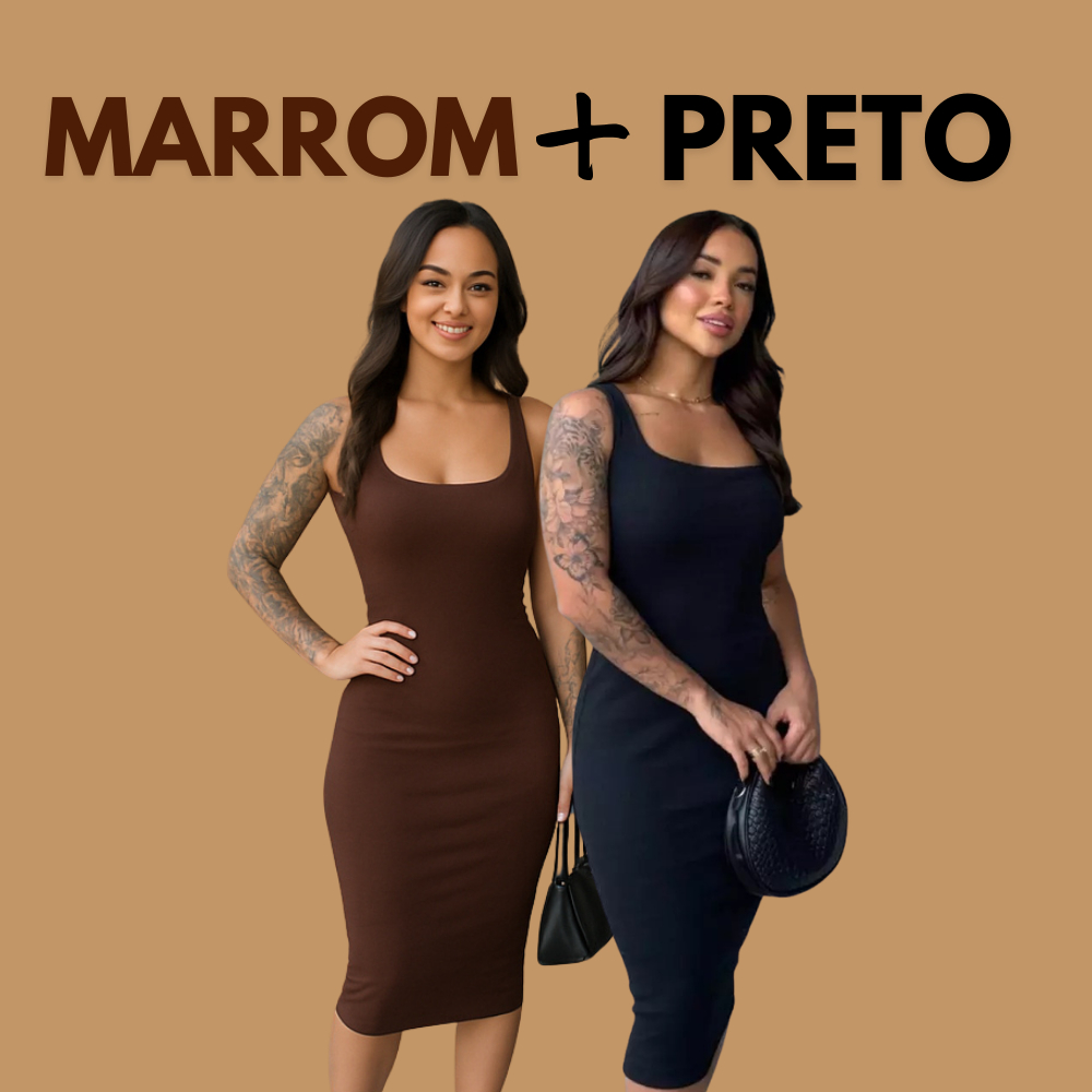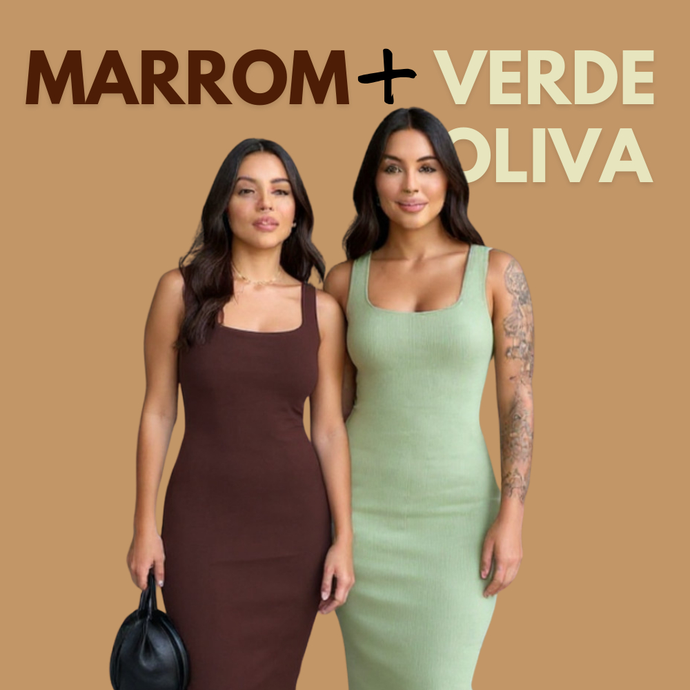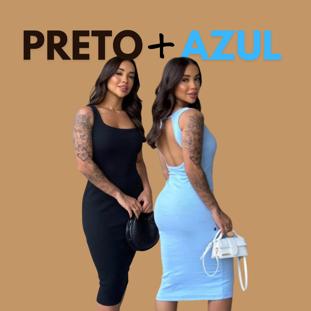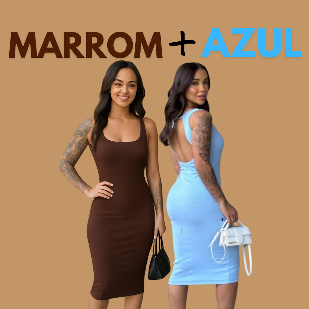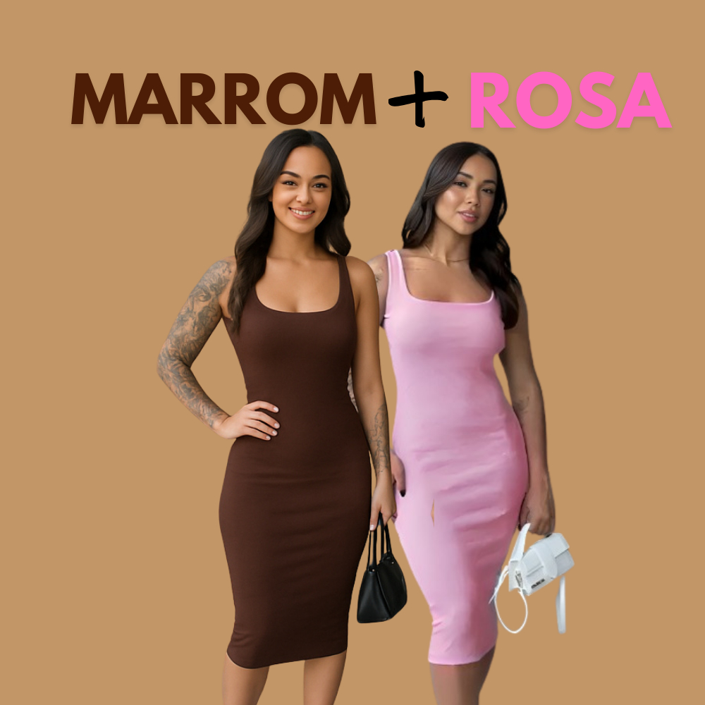Kit Com 2 Vestido Midi Costas Nuas Tubinho Canelado Anarruga Colado Modelador Gringa Com Alça