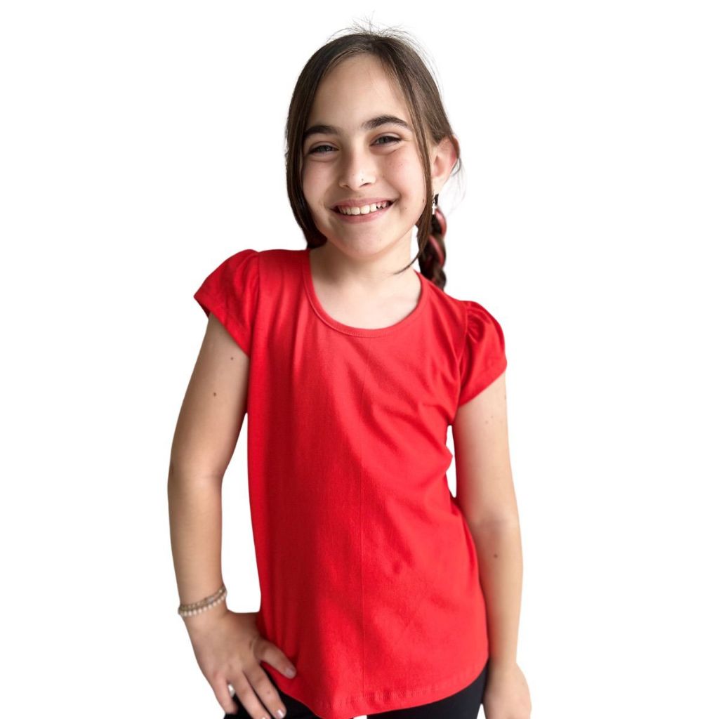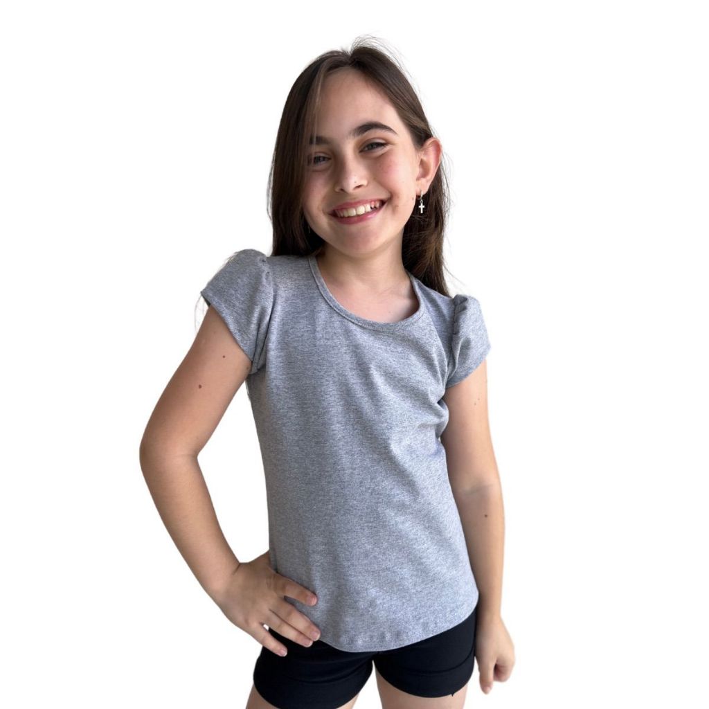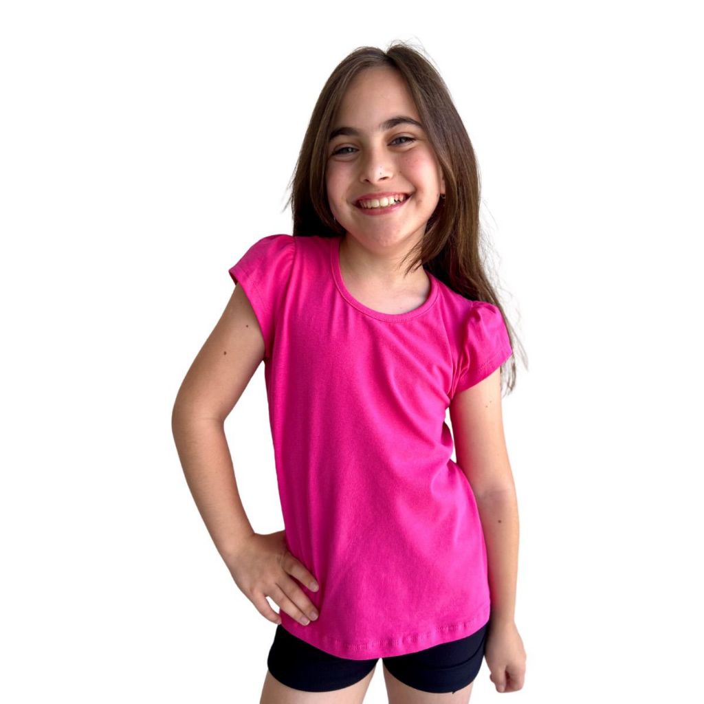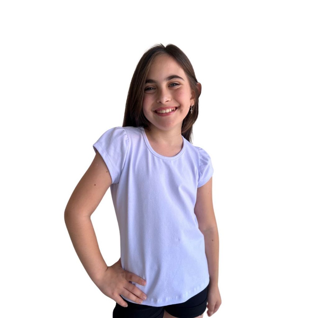 Blusa Infantil Feminina de Cotton Penteado Manga Curta Franzida 1 ao 10