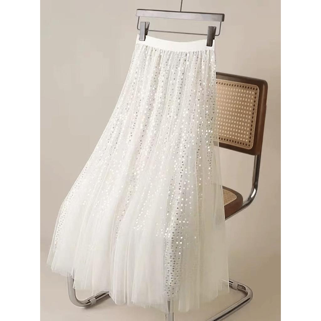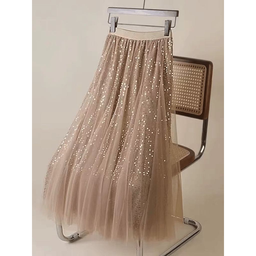 Saia midi feminina de tule com lantejoulas, perfeita para festas