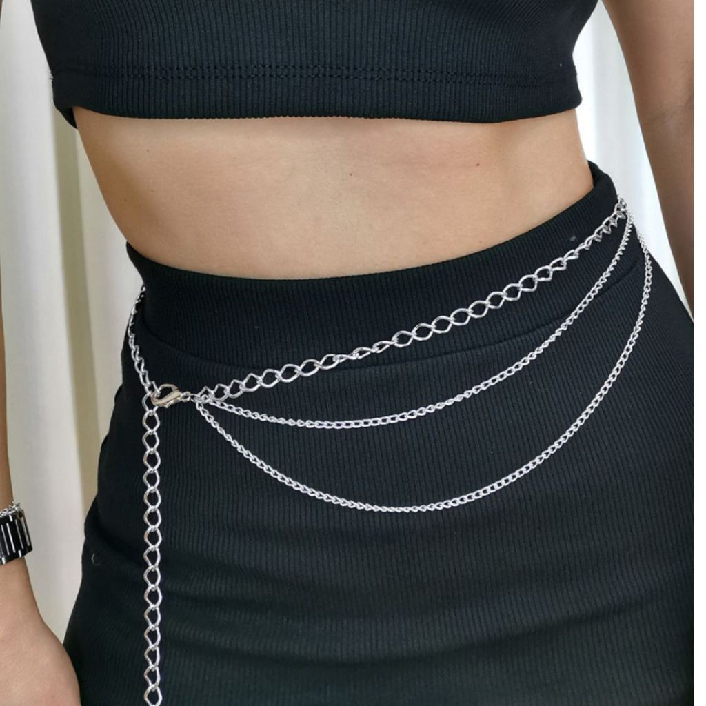 Cinto Feminino 3 Correntes Lindo Moda Tendencia Prata ou Dourado