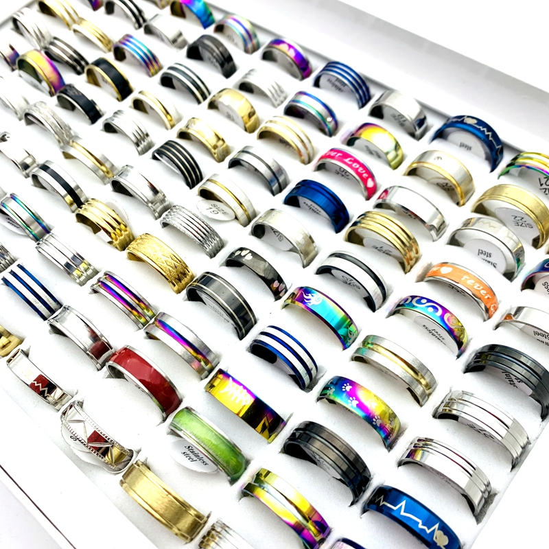 50pcs Anéis De Aço Inoxidável Para Homens E Mulheres Fashion Jewelry Party Gifts Wholesale Lot
