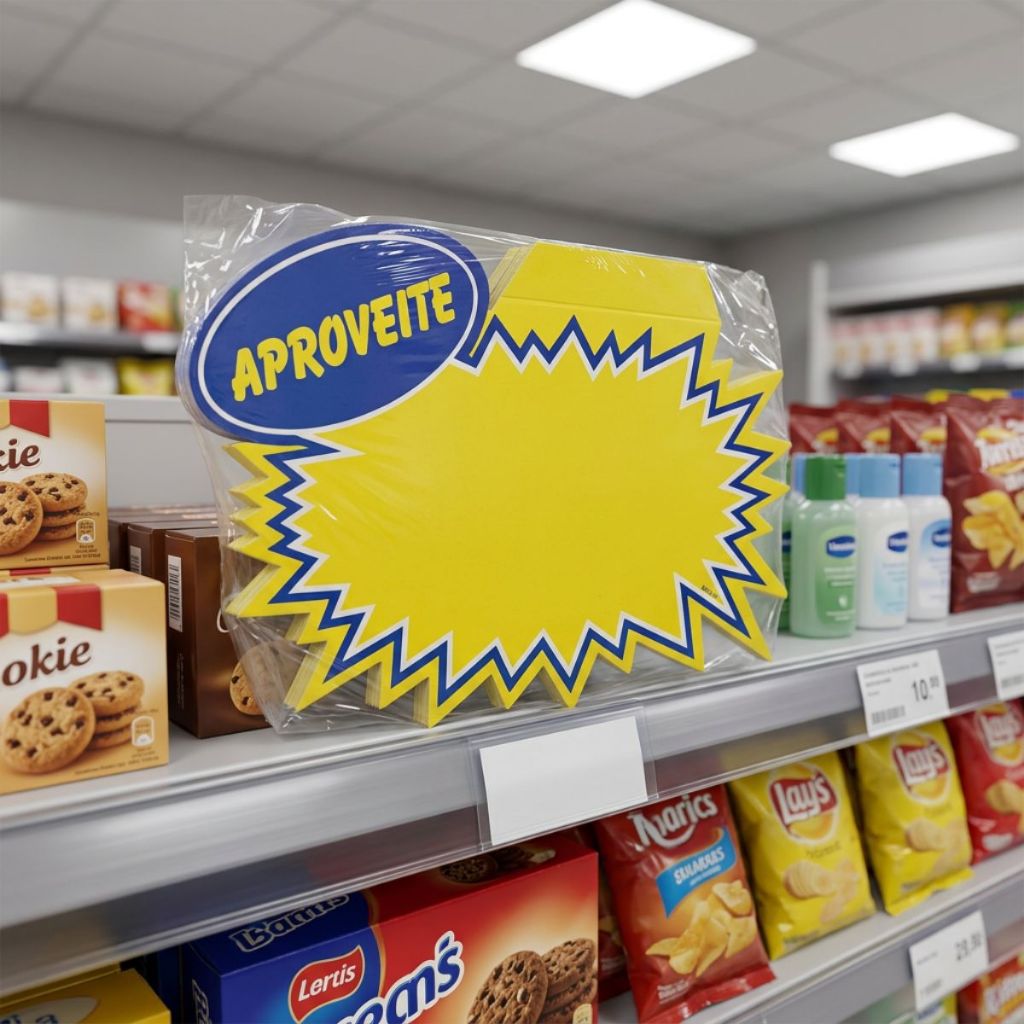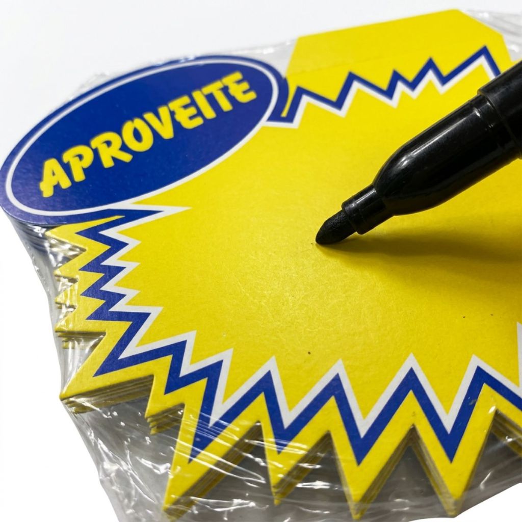 Cartaz Splash "Aproveite" com Aba 16x21,5cm em Papel Duplex – Pacote com 100 Unidades