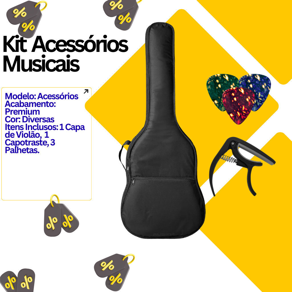 Capa Para Violão + Capotraste + Palhetas Premium