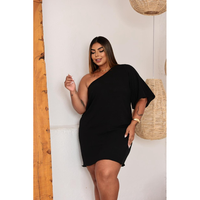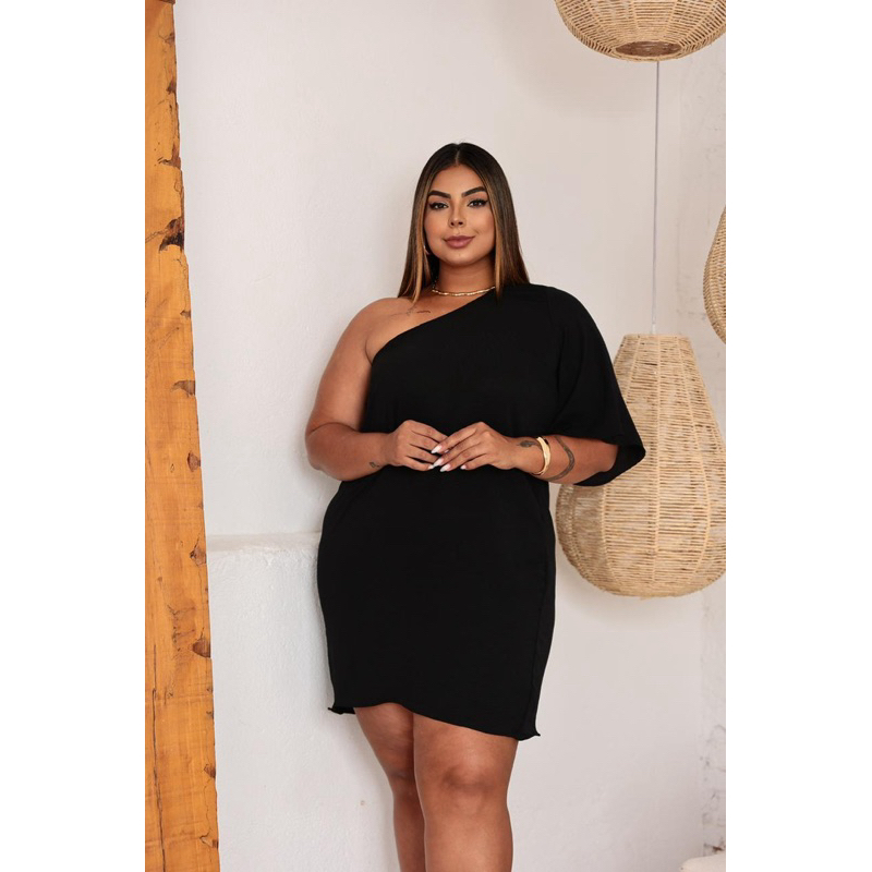 Vestido femino Plus Size alça única em tecido Duna verão moda feminina Plus