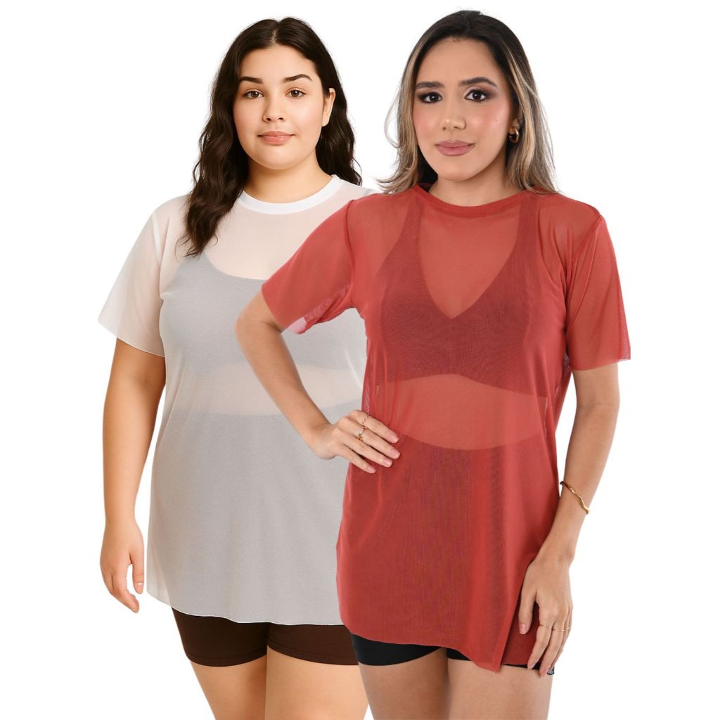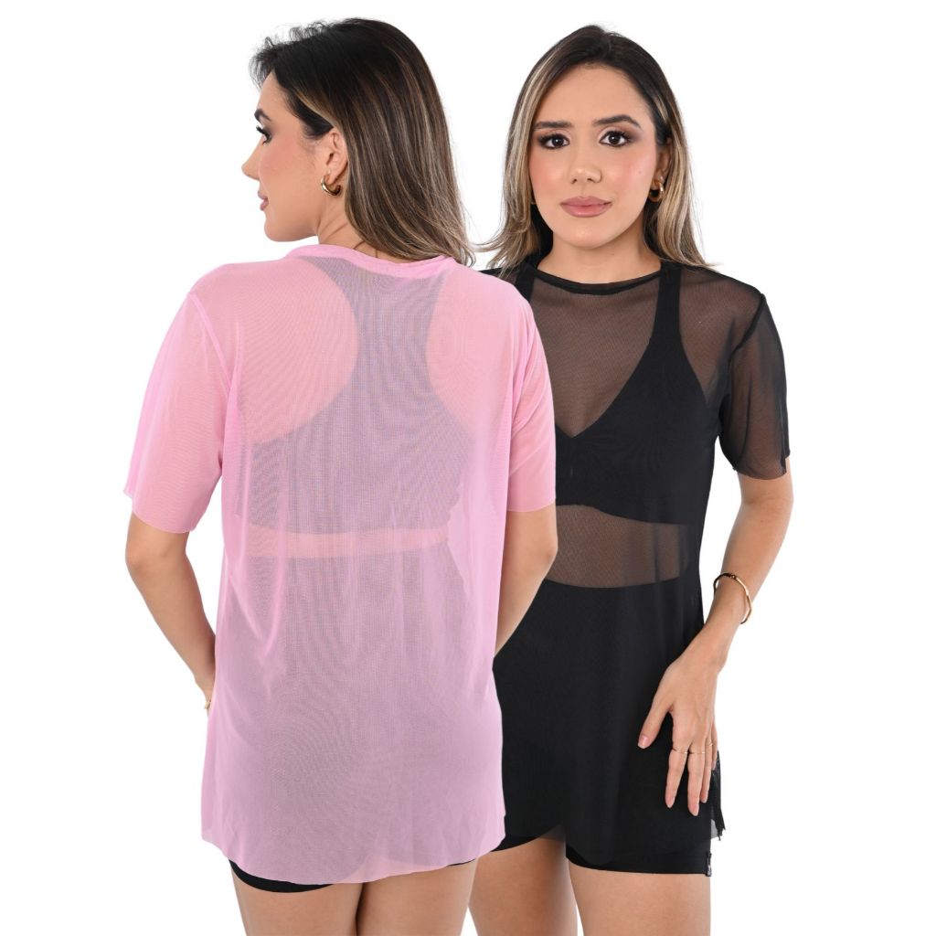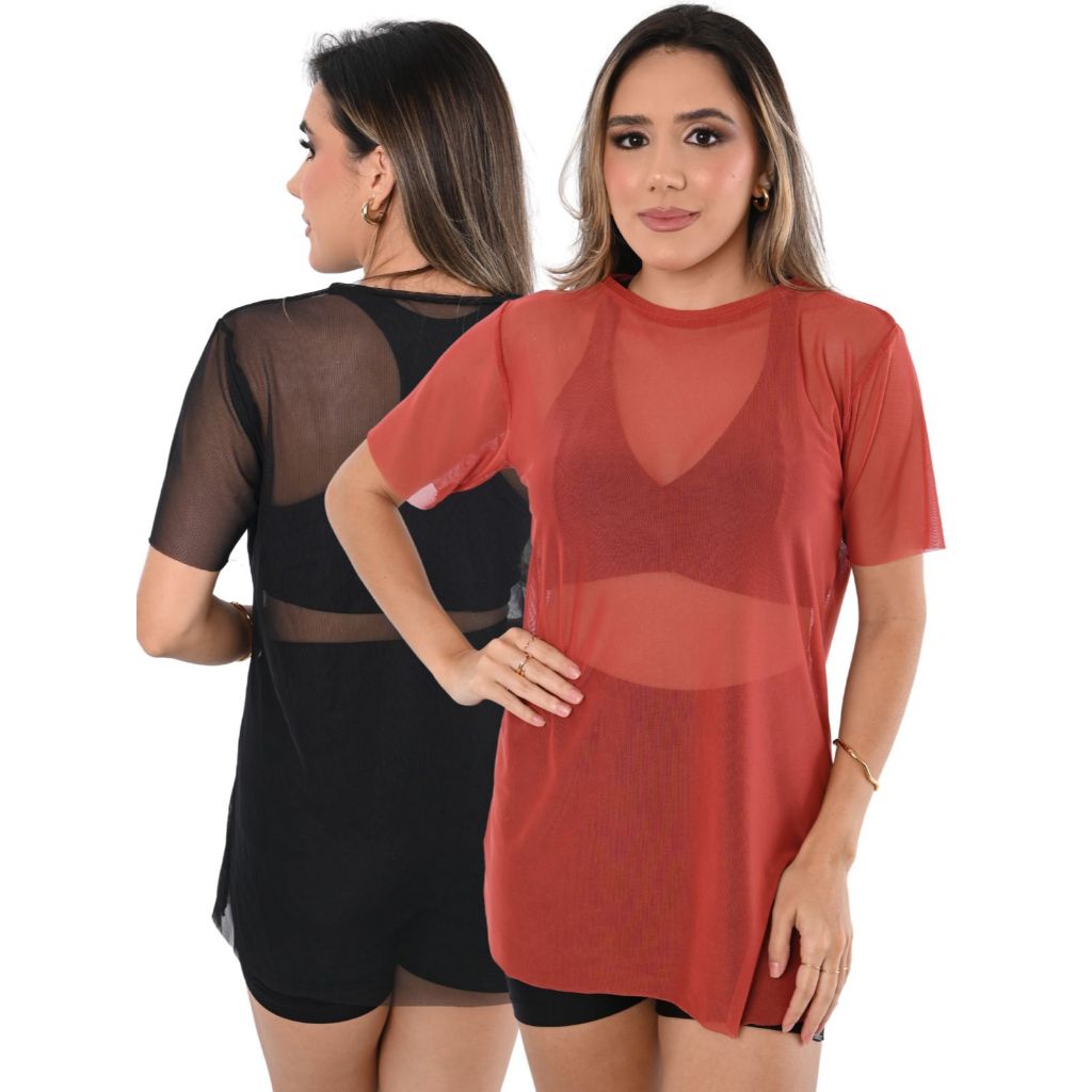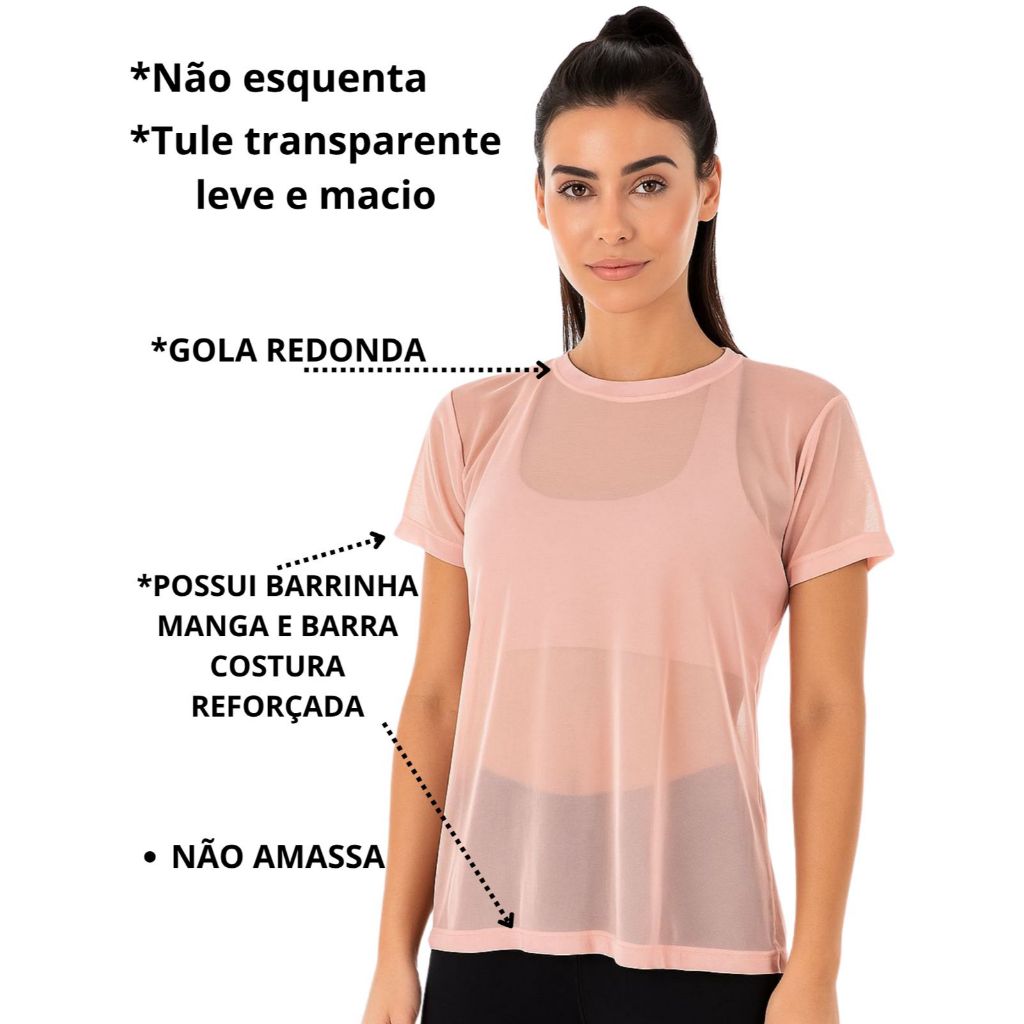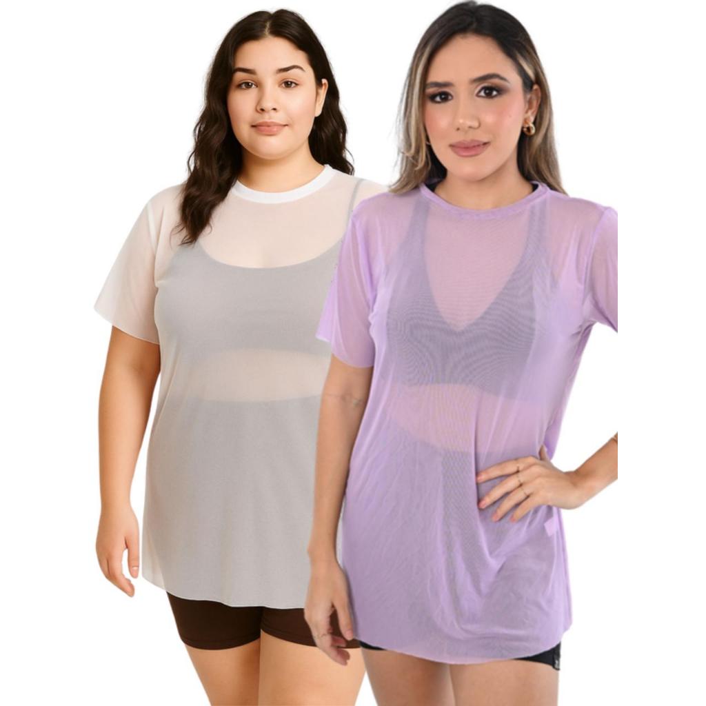 Kit 2 Camiseta Tule transparente Fitness Esportiva ideal para Treinos looks casuais