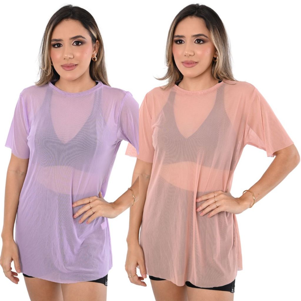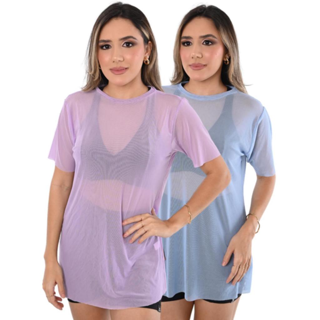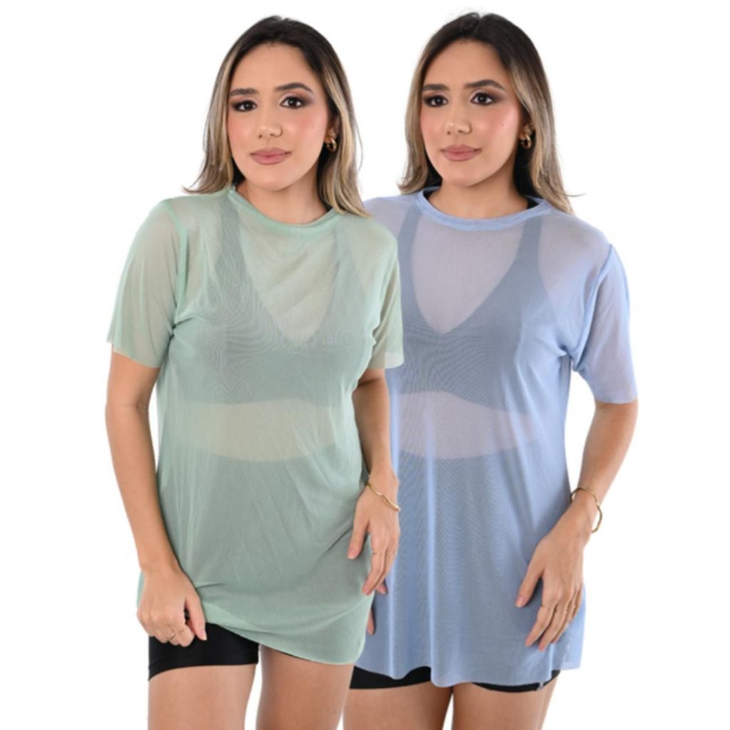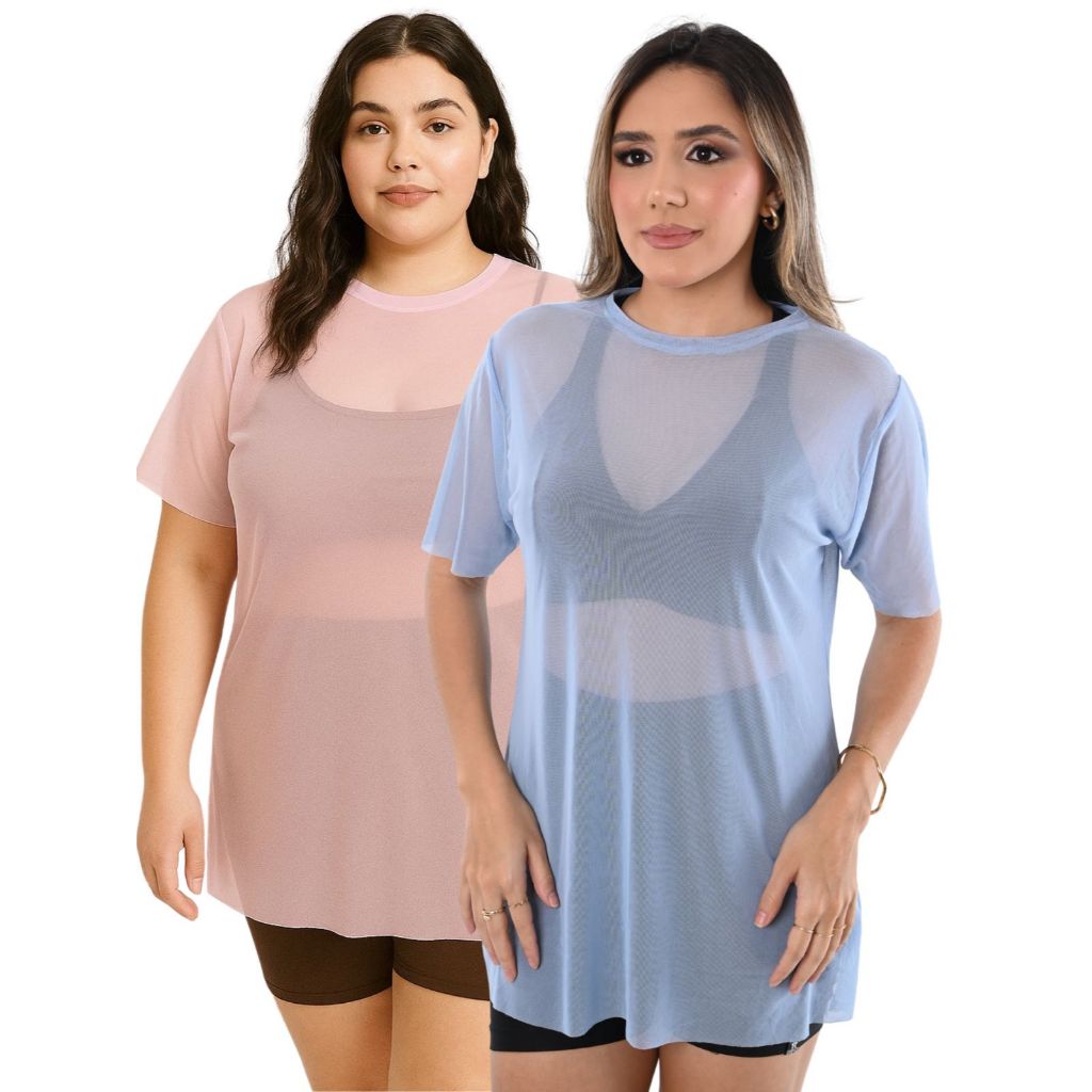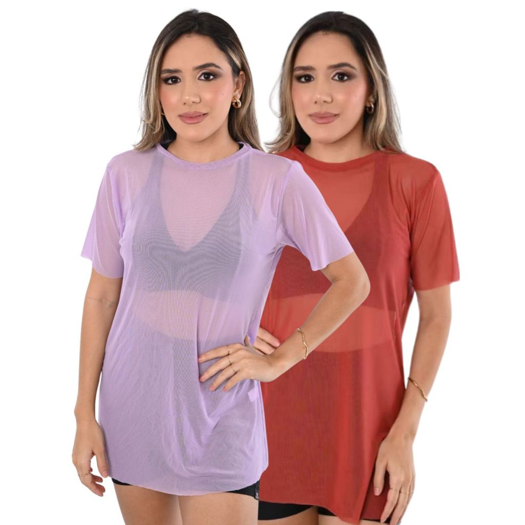Kit 2 Camiseta Tule transparente Fitness Esportiva ideal para Treinos looks casuais