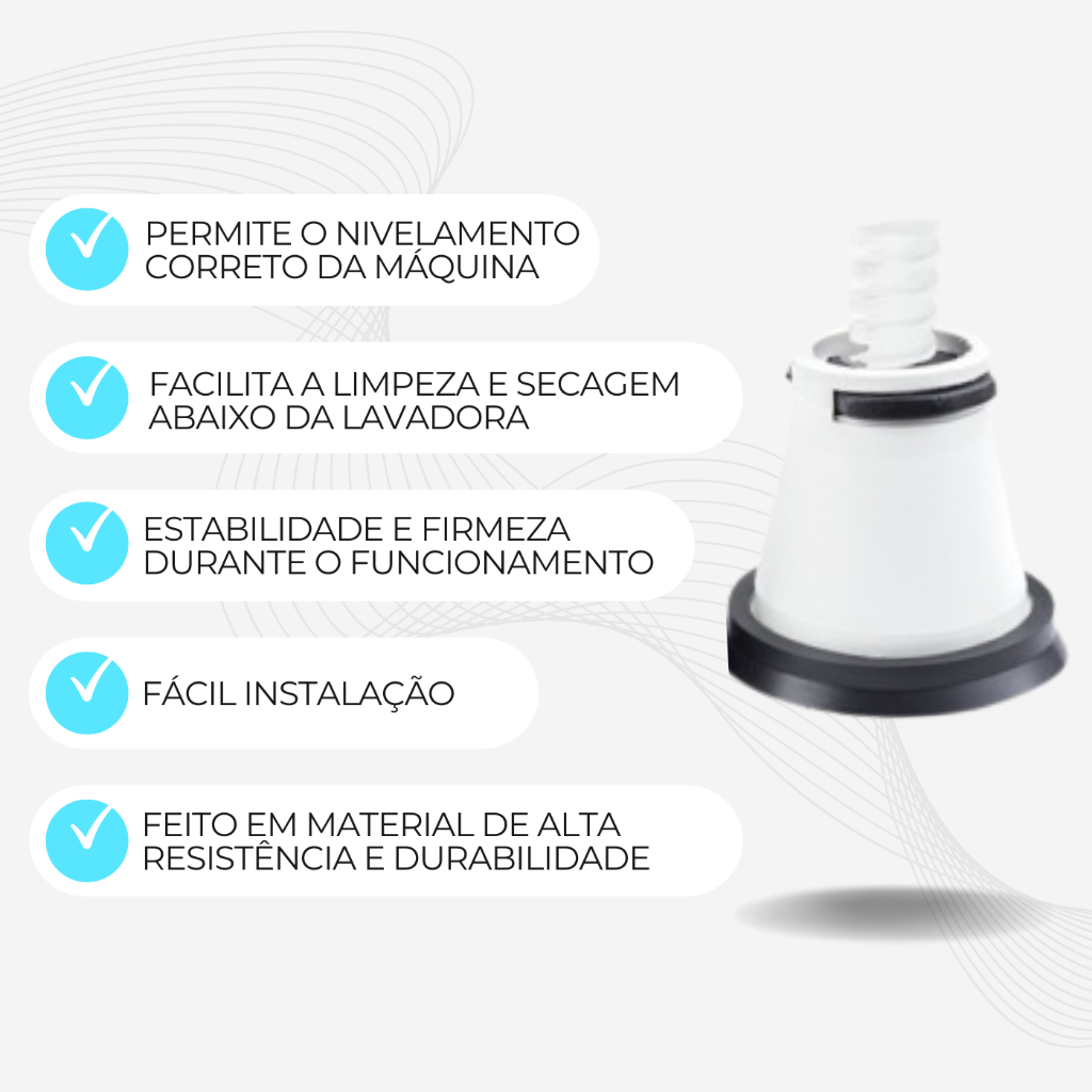 Kit 4 Pé Nivelador Anti Vibração Máquina de Lavar Universal Jogo de Pés Completo Brastemp Consul