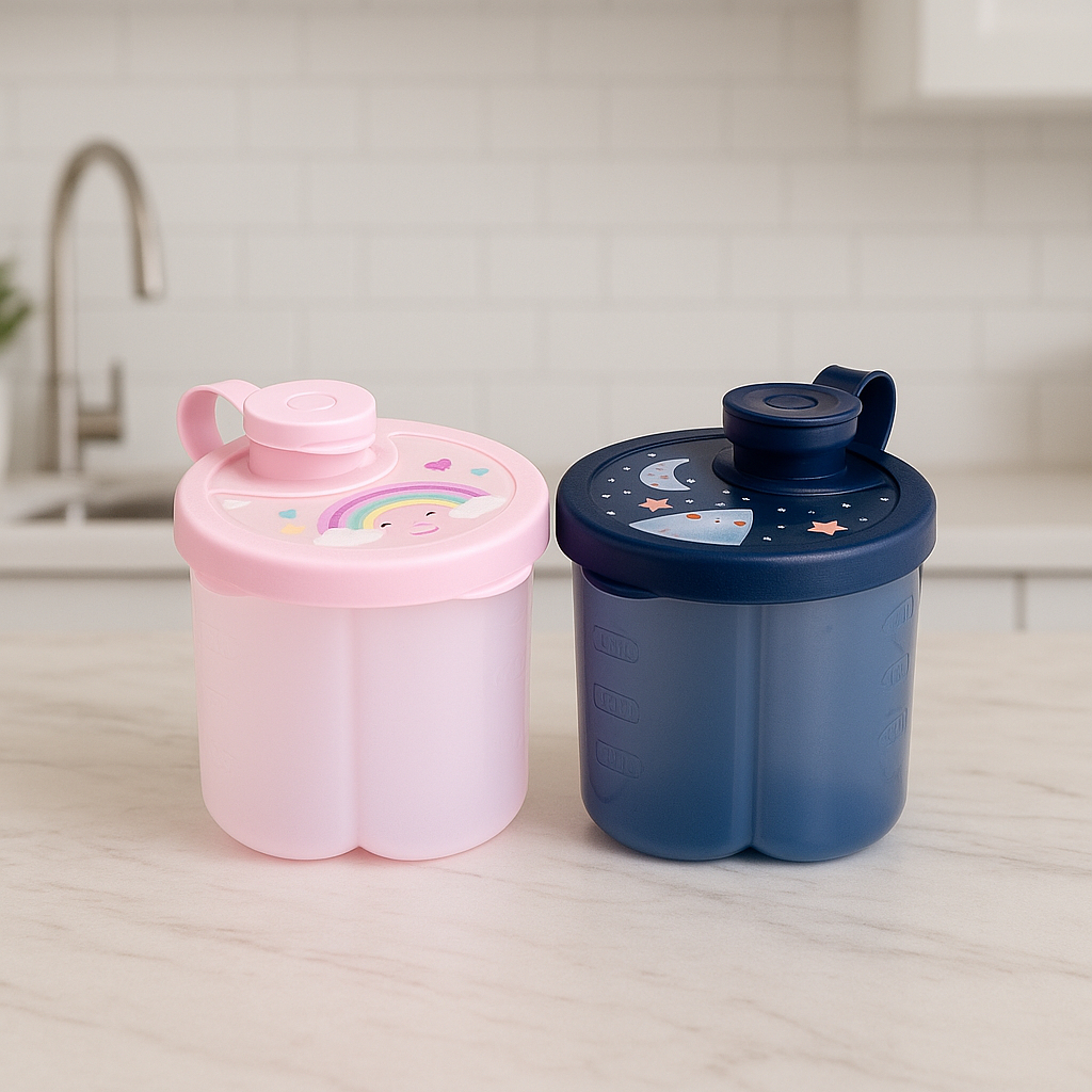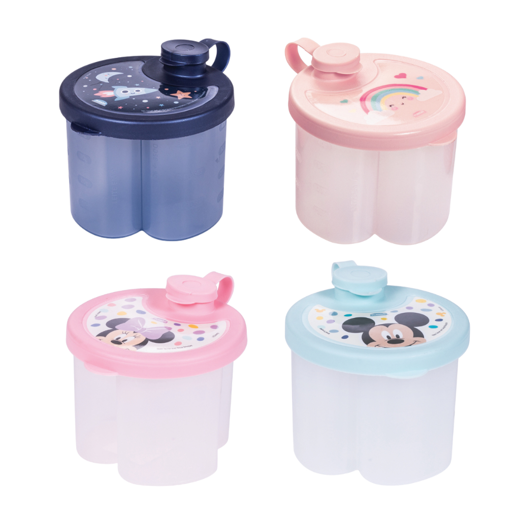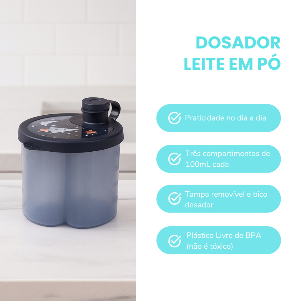 Porta Leite em Pó Dosador Pote 300ml com Tampa 3 Compartimentos Menino e Menina Plasútil