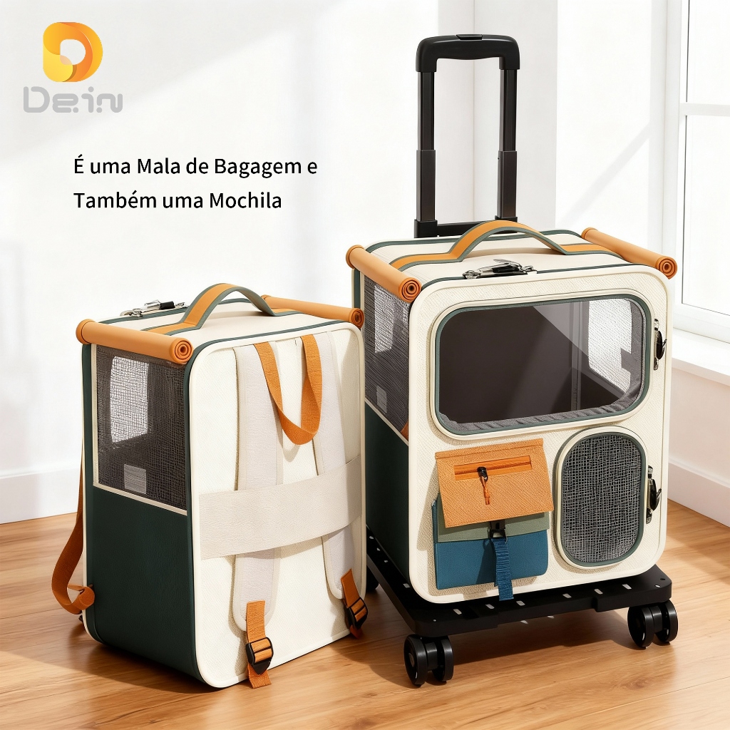 Mochila Pet com Rodinhas 360° e Alça Retrátil | Transporte Seguro para Gatos
