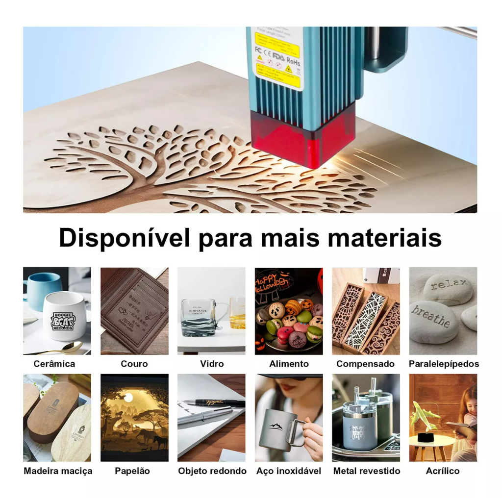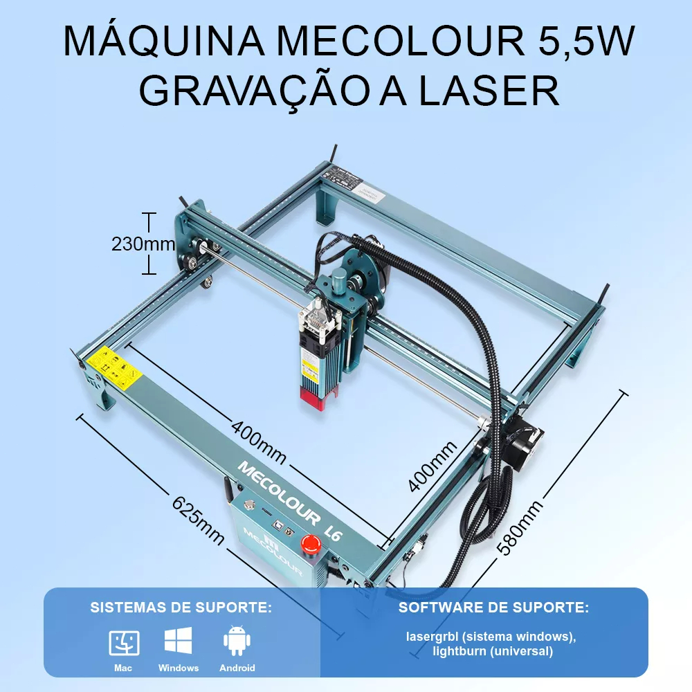 Gravadora Impressora Laser Cnc + Rolo Rotativo Corte E Gravação 40x40cm 48w 5.5w L6 110v/220v Mecolour