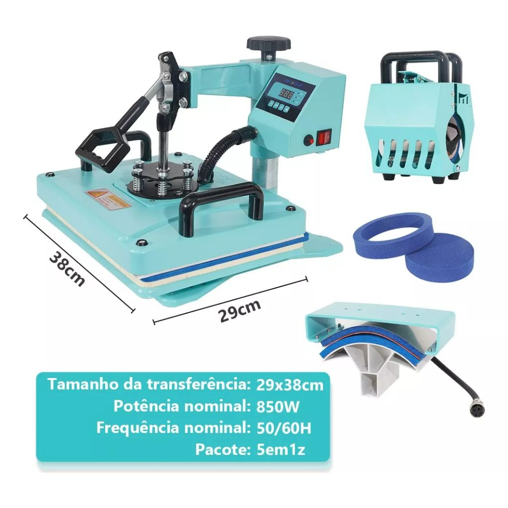 Máquina de Transferência de Calor 5 em 1 29*38cm Adequada Para Camisetas Copos Chapéus Mecolour