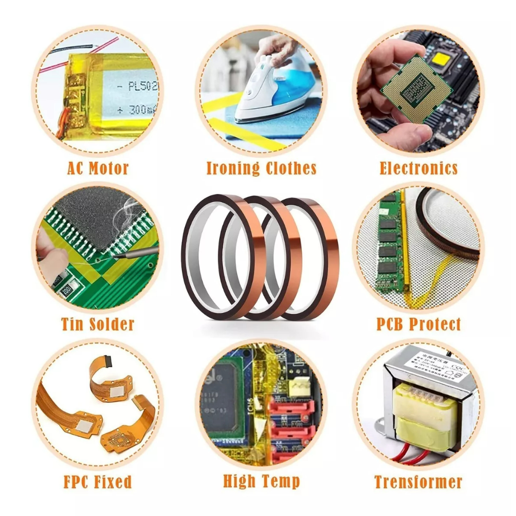 Mecolour 3 peçasFita Kapton Sublimação 6mm Térmica Poliamida Altas Temperaturas 33m