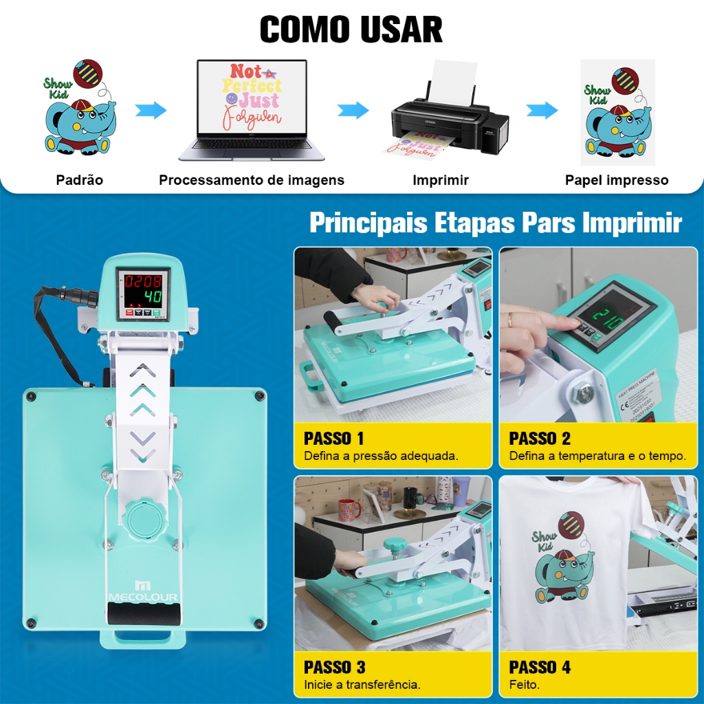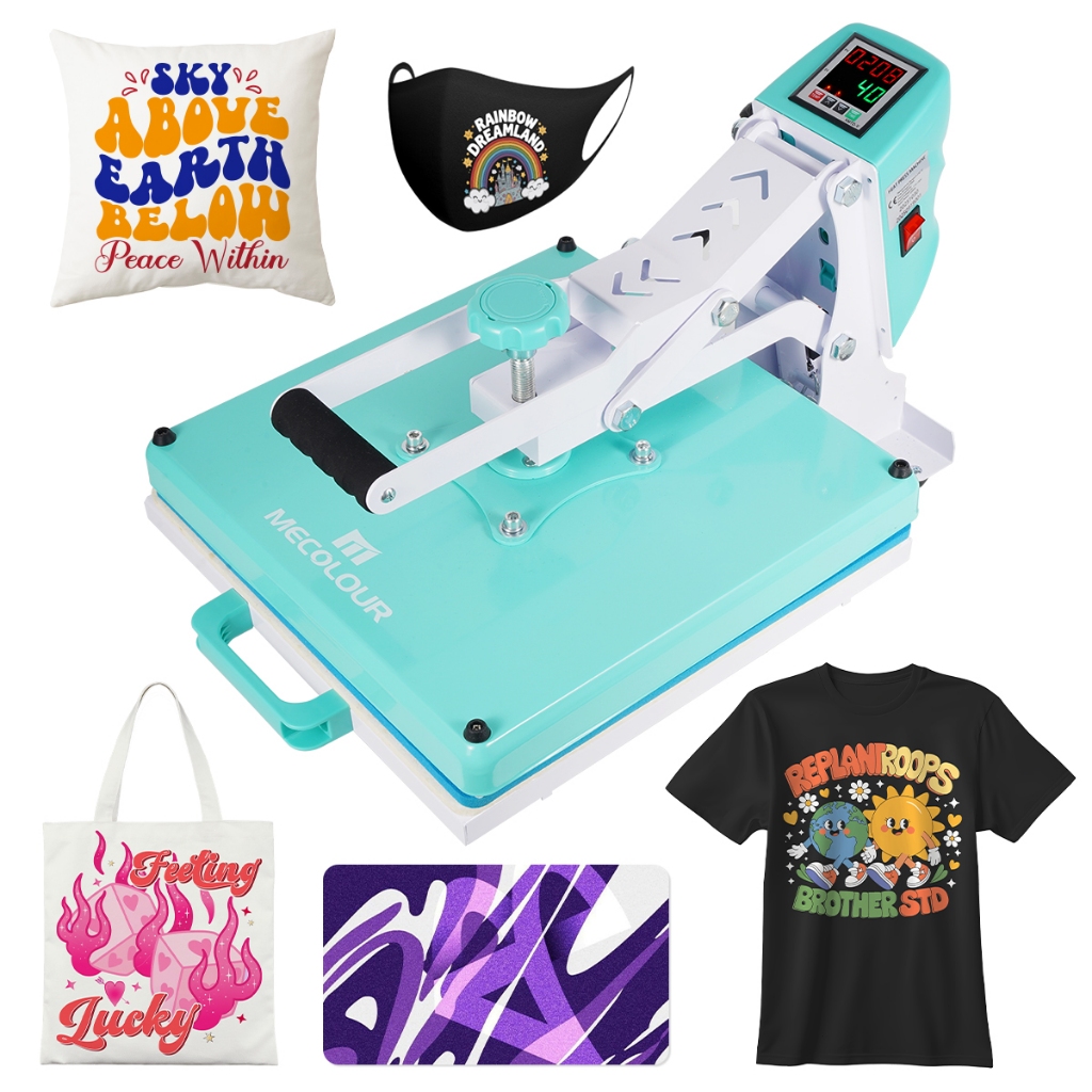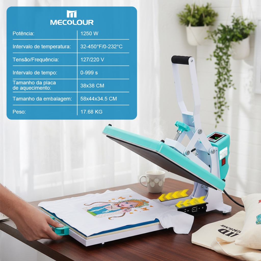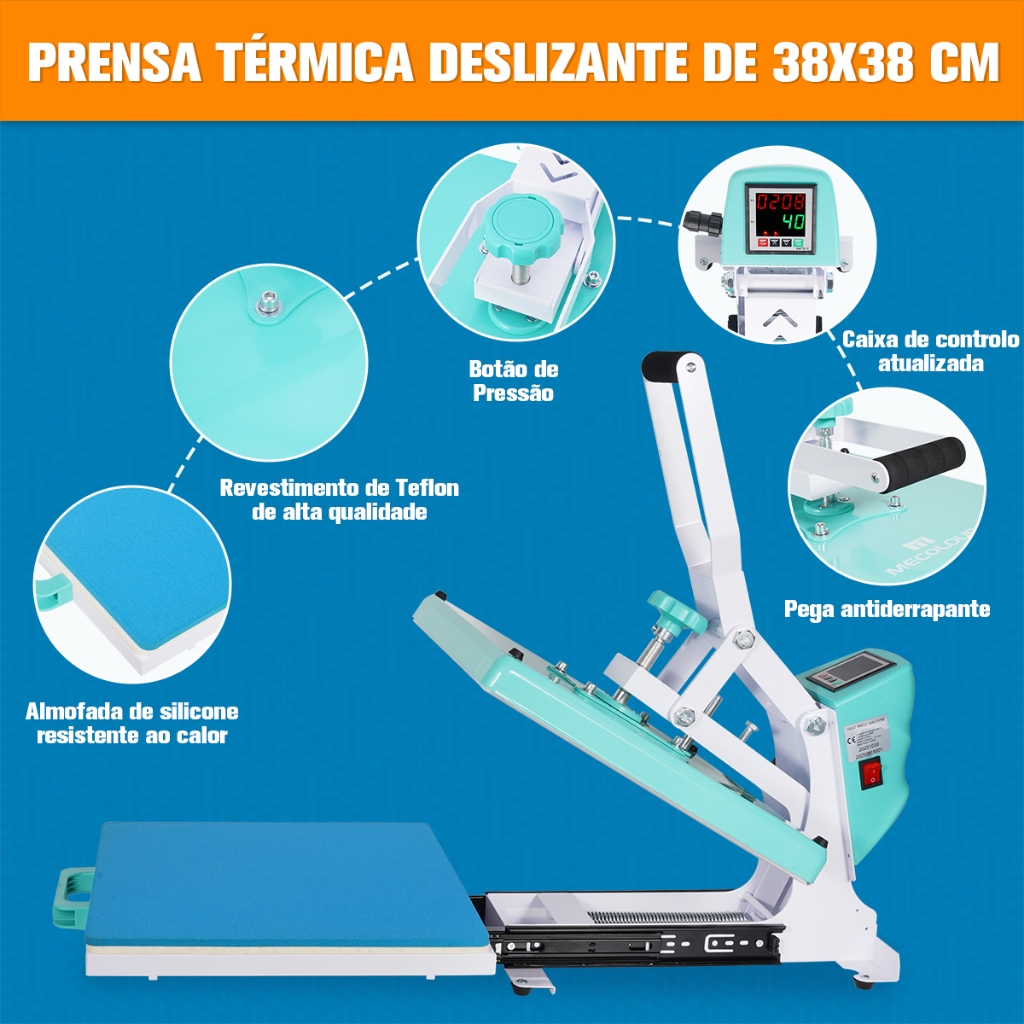 MECOLOUR 38x38cm Prensa Térmica de Trilho para Sublimação e Impressão DTF