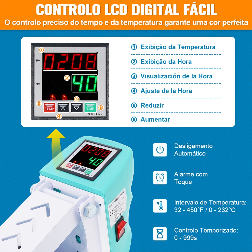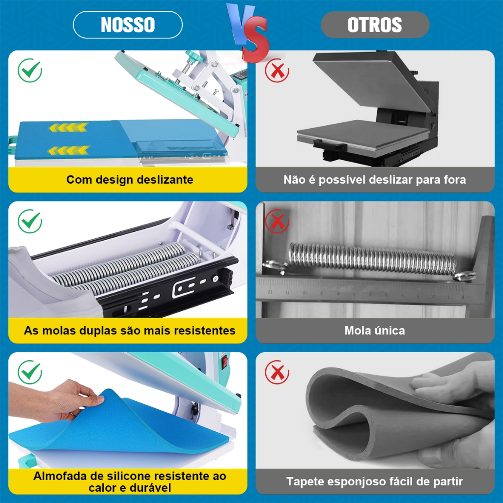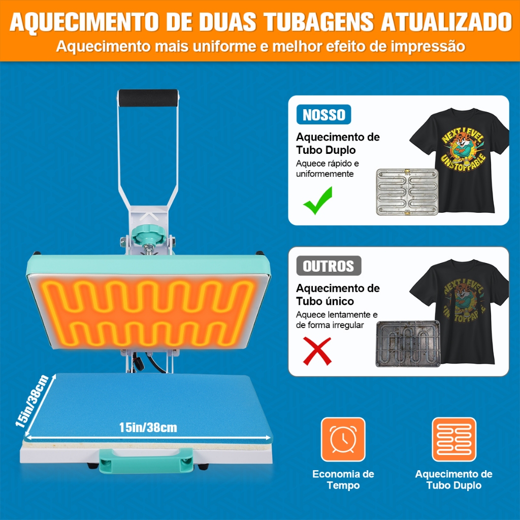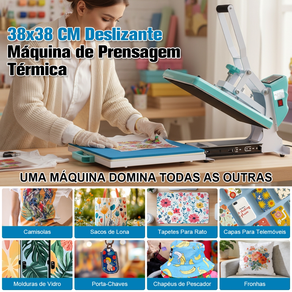 MECOLOUR 38x38cm Prensa Térmica de Trilho para Sublimação e Impressão DTF