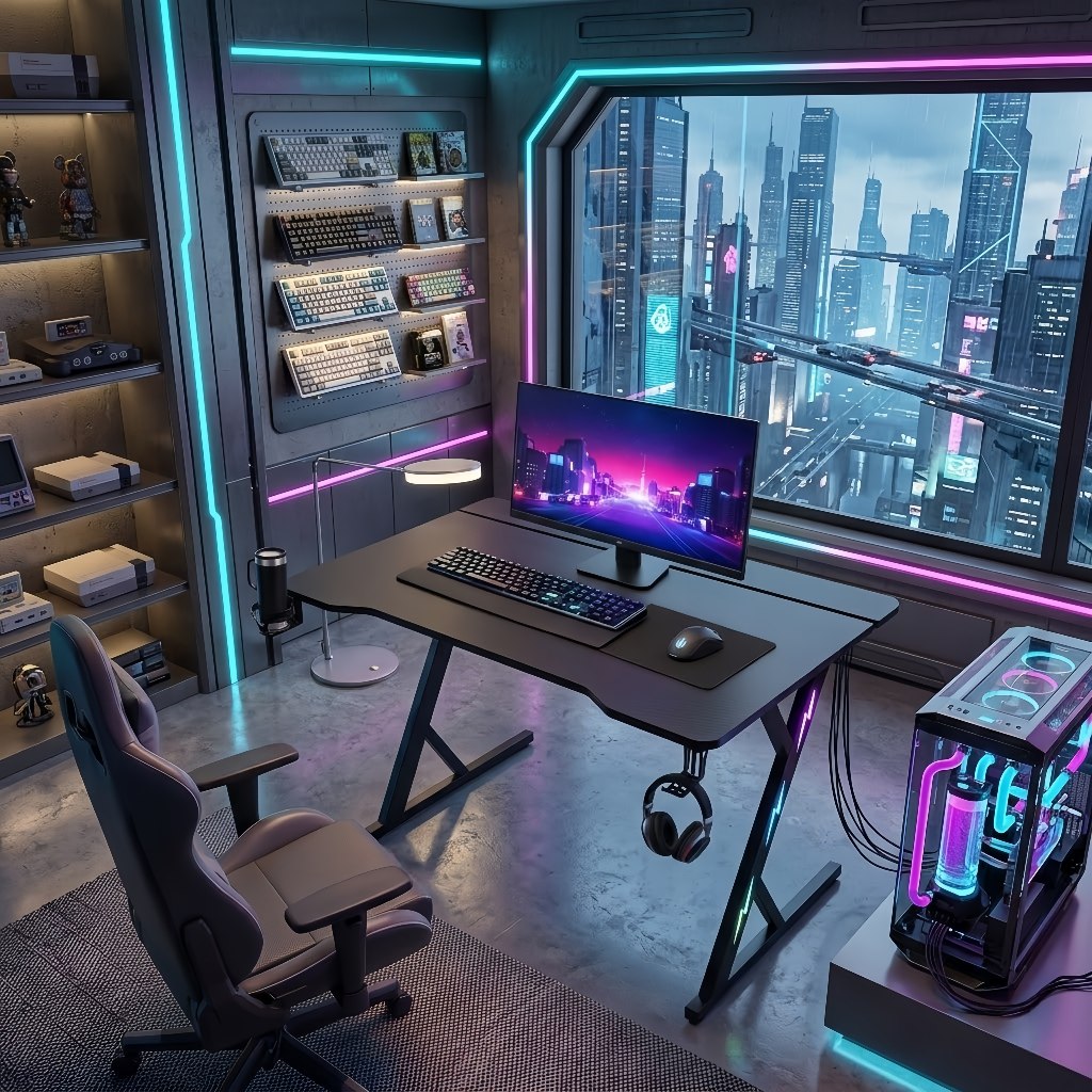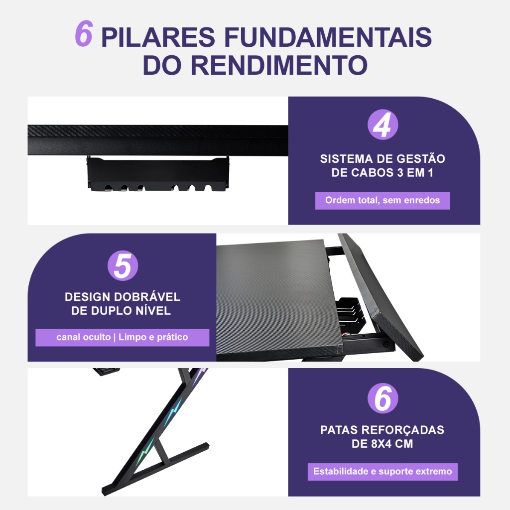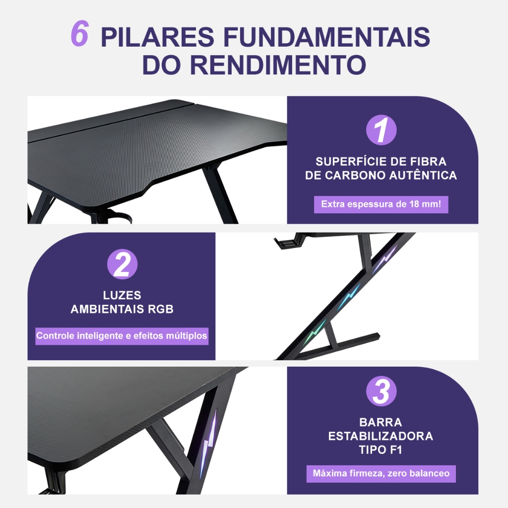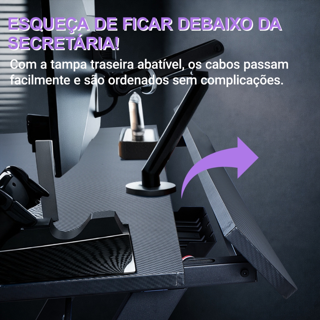 Mesa Gamer para PC com Fibra de Carbono Suporte Monitor Porta Copo Gancho Headset Escrivaninha Gamer MECOLOUR