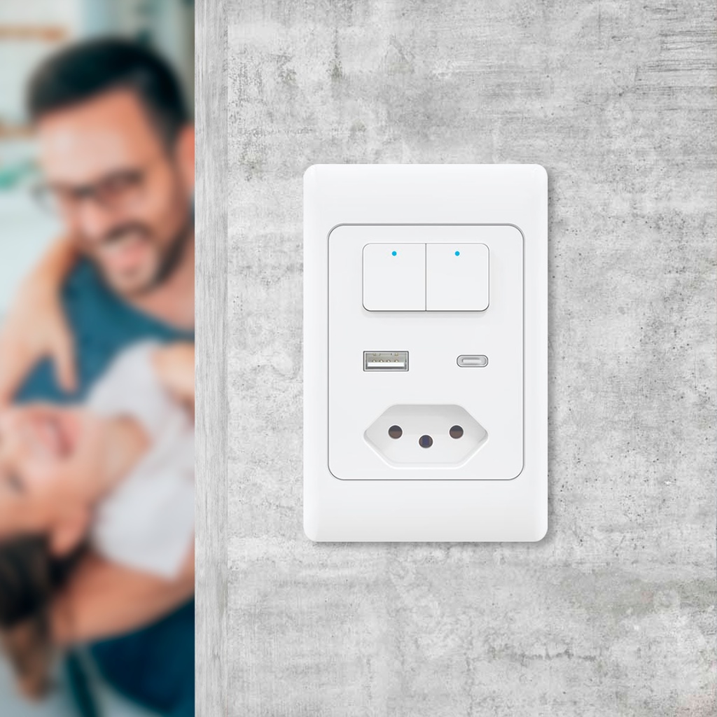 Interruptor Smart Wifi Casa 2 Teclas Alexa Usb C Tomada Agl