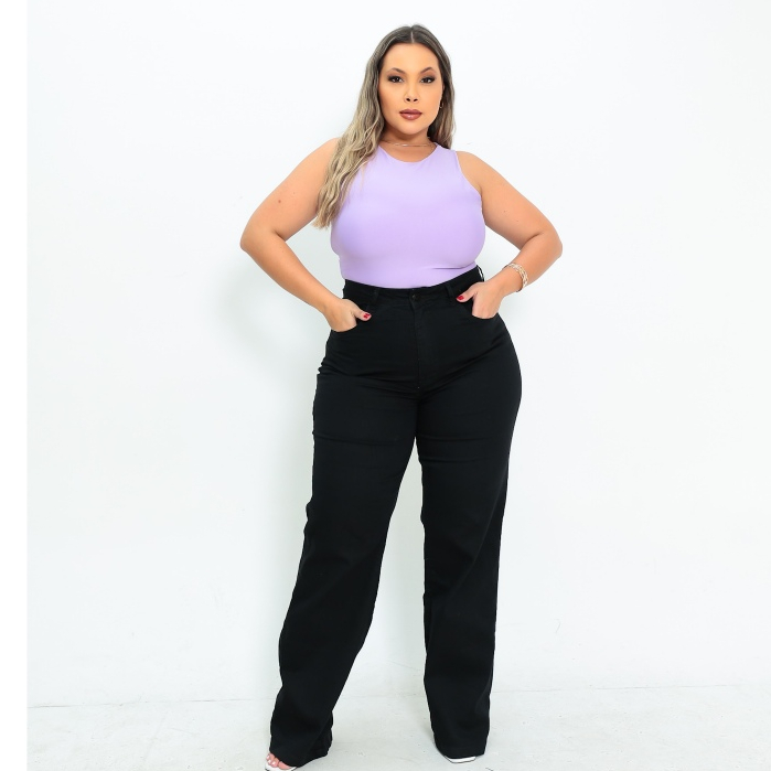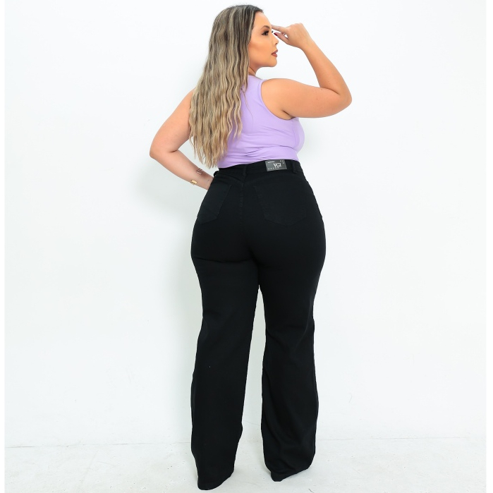 Calça Jeans Feminina Wide Leg Preta Plus Size