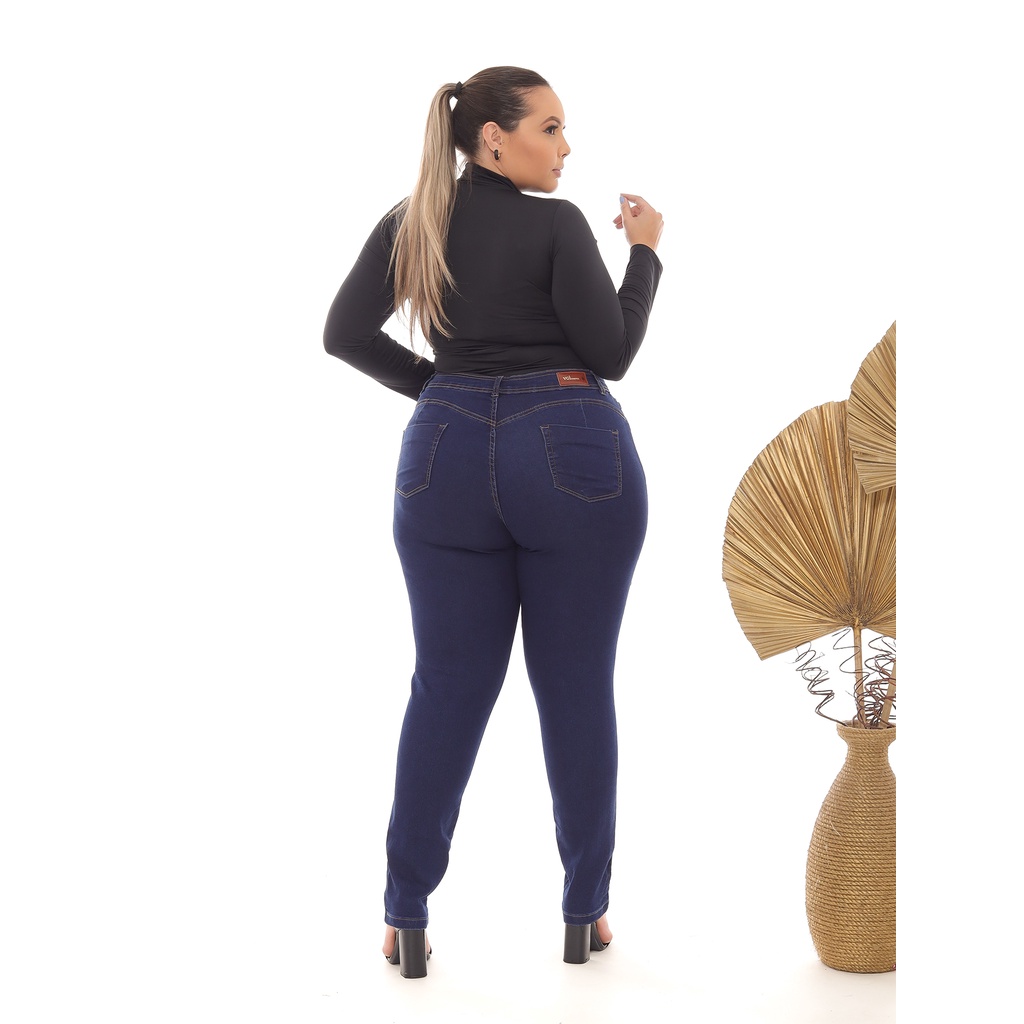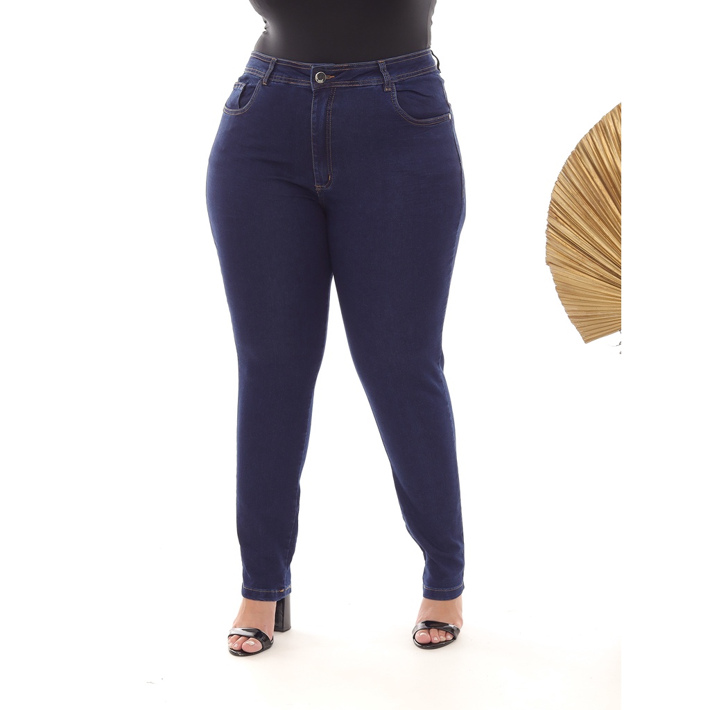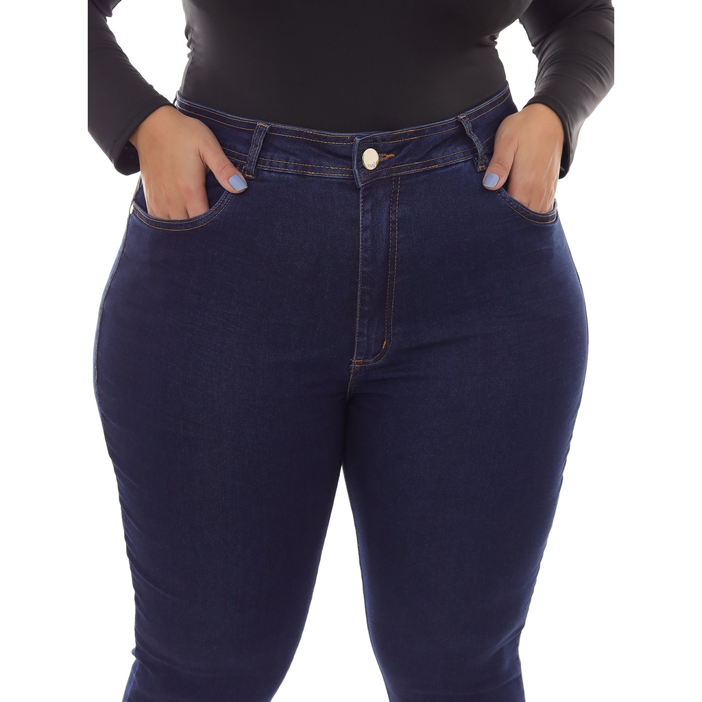 Calça Jeans Plus Size Skinny Feminina Lavagem Escura Versátil e de Alta Qualidade e Conforto