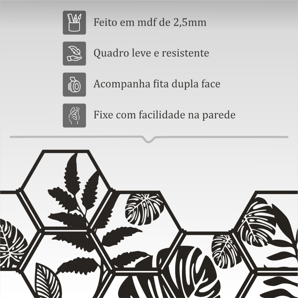 Placa Decorativa Parede Quadro Folhagem 25x25 Mdf Monte como Quiser Decoração Sala