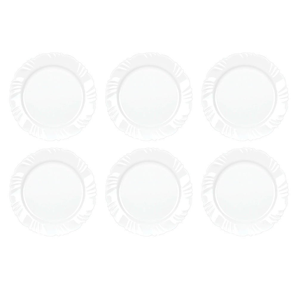 Kit 6 Pratos Rasos Nadir Figueiredo Pétala Vidro Floral Branco 25cm