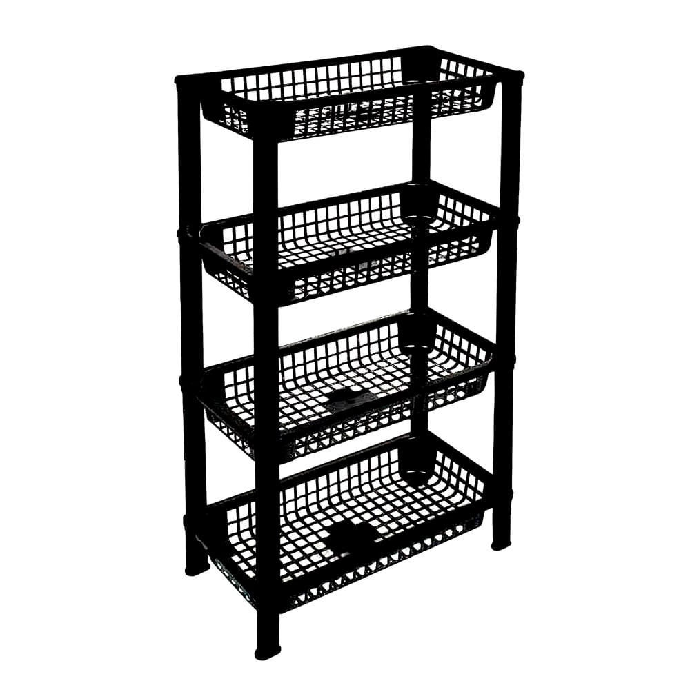 Estante de Plástico São Bernardo Multiuso com 4 Prateleiras Preta 73x39,7x19,8cm