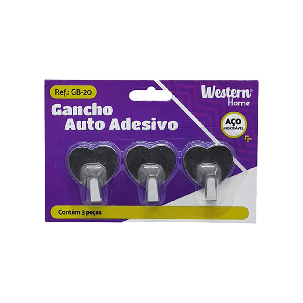 Gancho Adesivo em Inox Etilux Western Coração com 3 Unidades