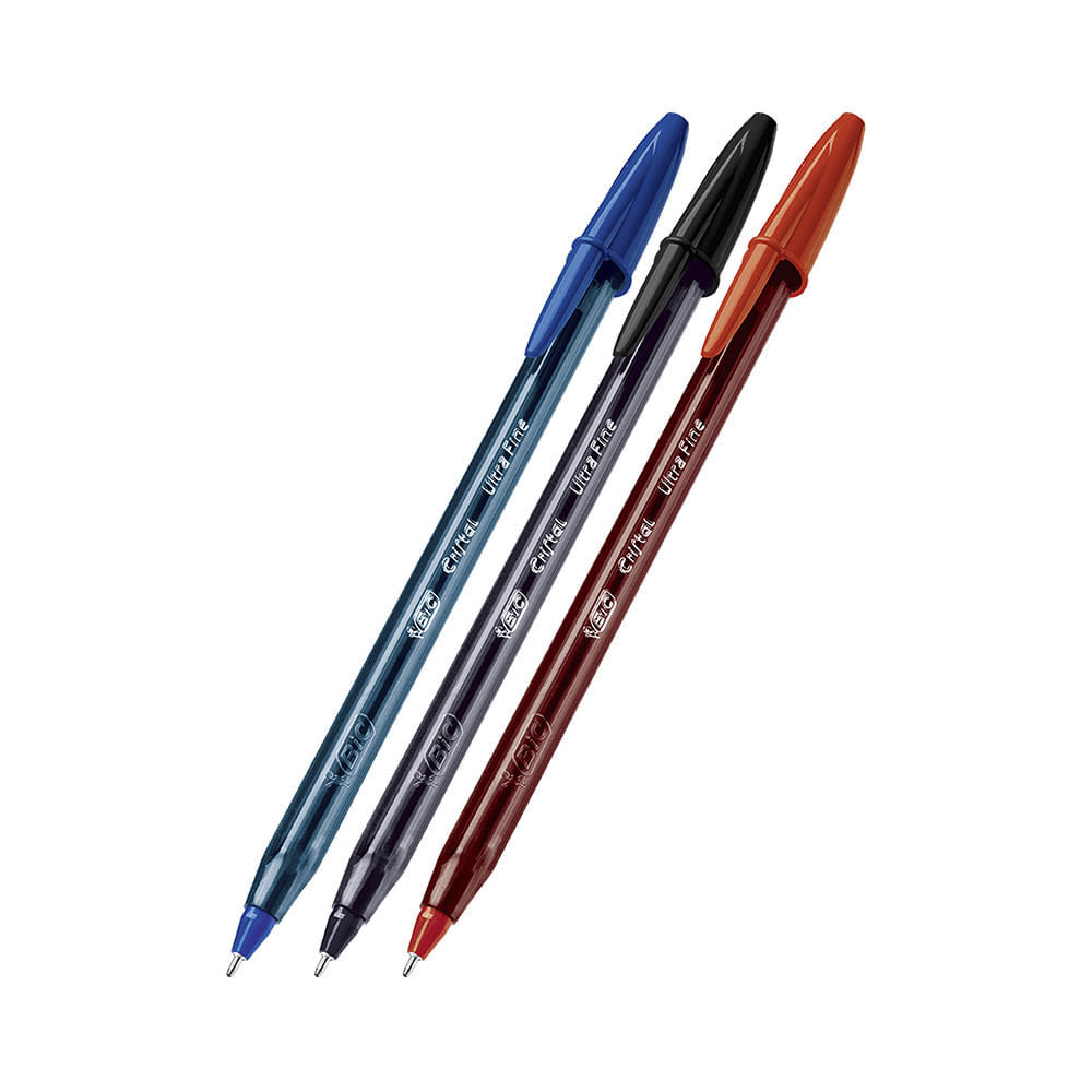 Caneta Esferográfica Bic Cristal Extra Fina 0.7mm Azul, Preta e Vermelha com 3 Unidades