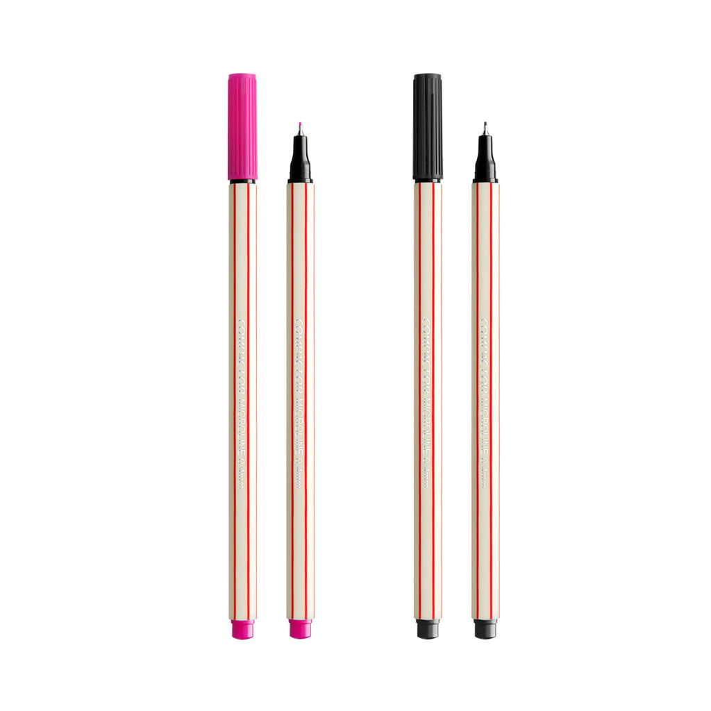 Caneta Hidrográfica Compactor Microline 0.4mm Preta e Rosa 2 Unidades