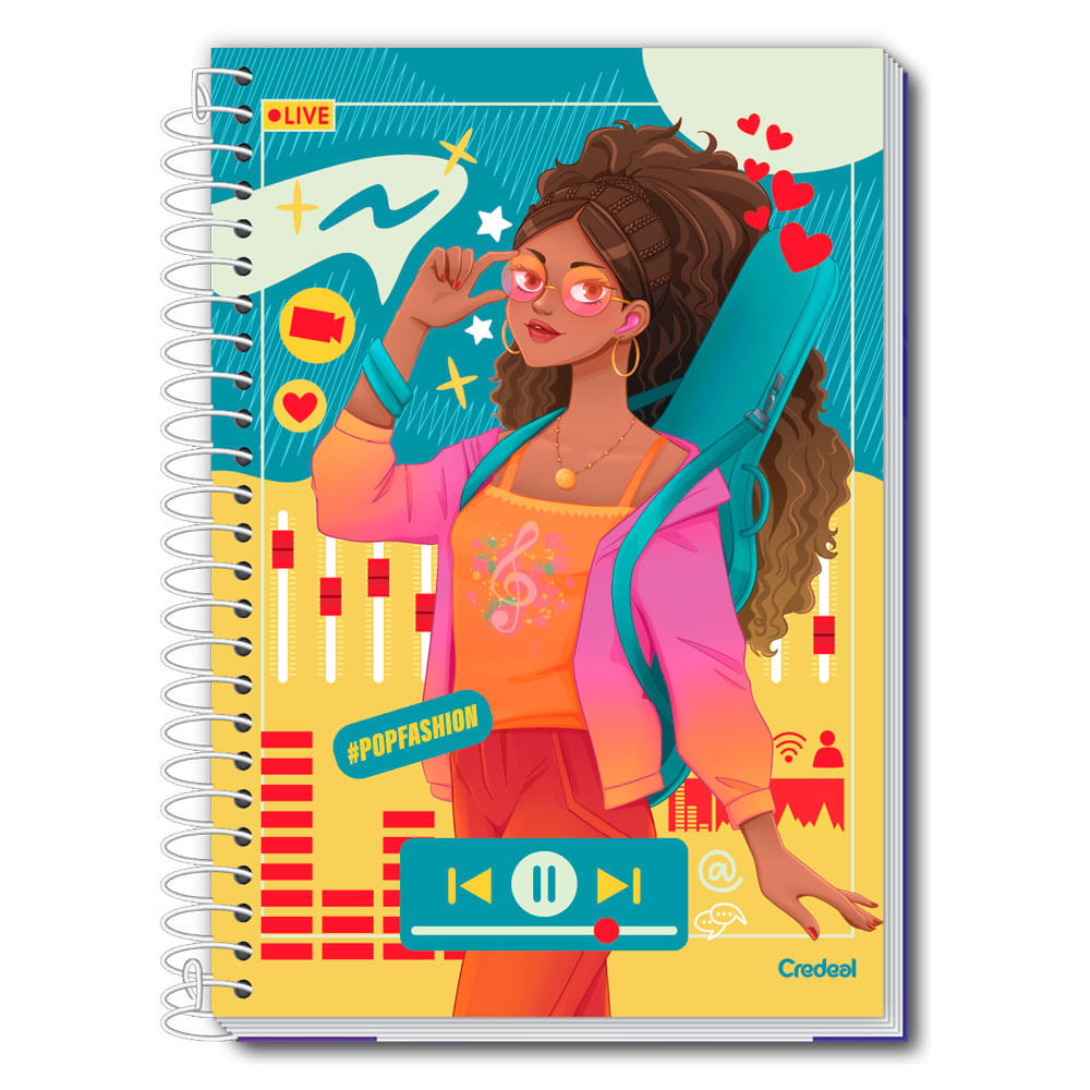 Caderno Universitário Feminino Pop Fashion 160F/10 Matérias Credeal