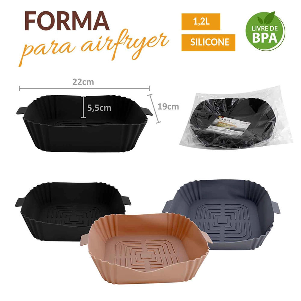 Forma Quadrada em Silicone 1,2L para Airfryer Sortido