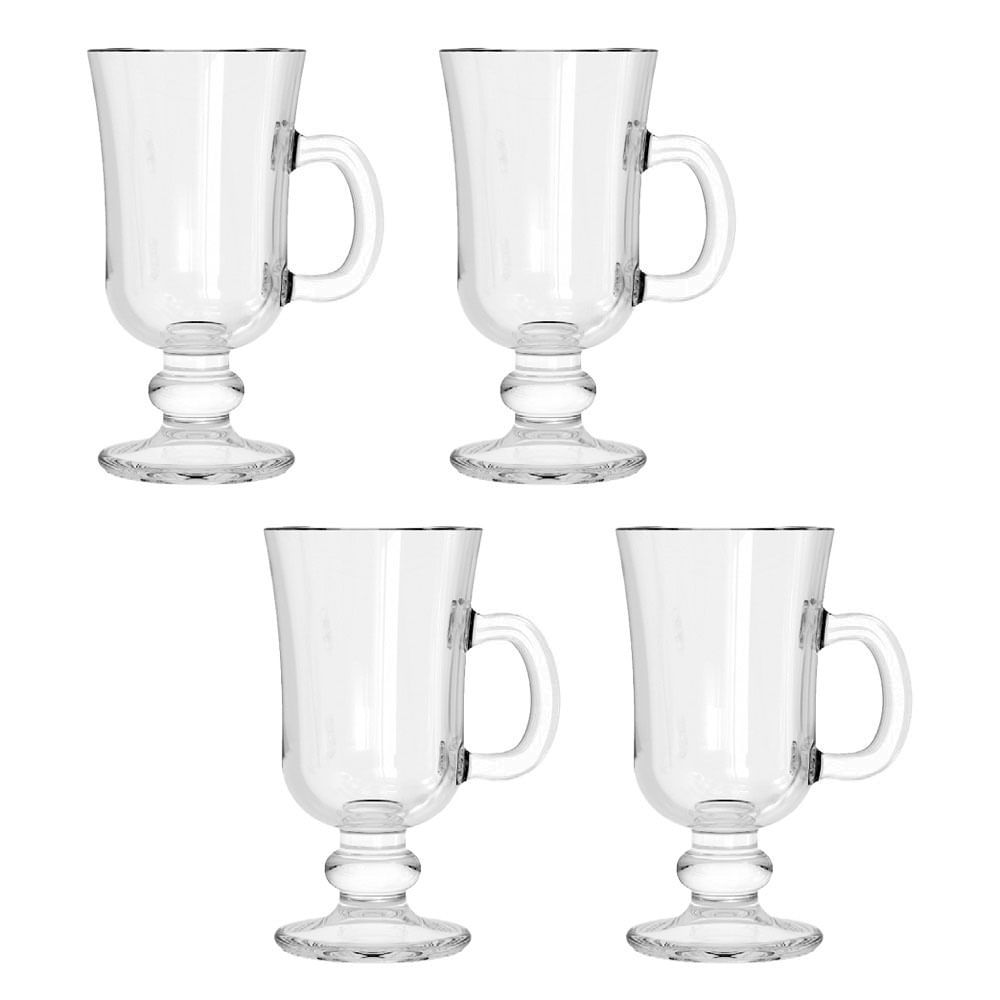 Conjunto de Canecas com 4 Peças em Vidro Cappuccino Creme CV244727 Cazza