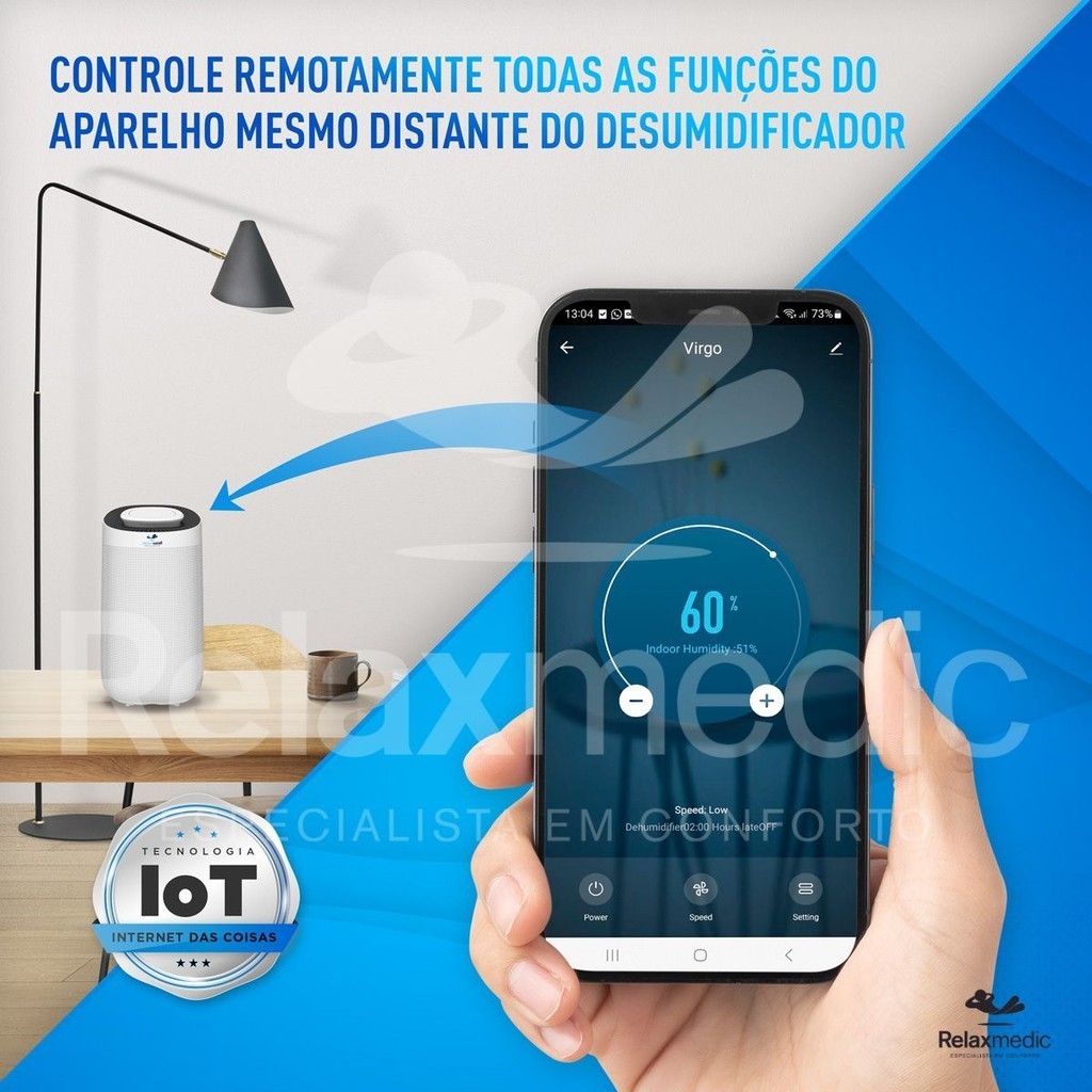 Desumidificador de Ar Compressor Smart Wi-Fi Relaxmedic