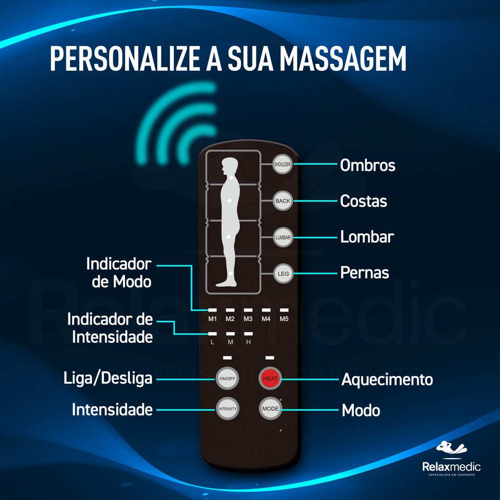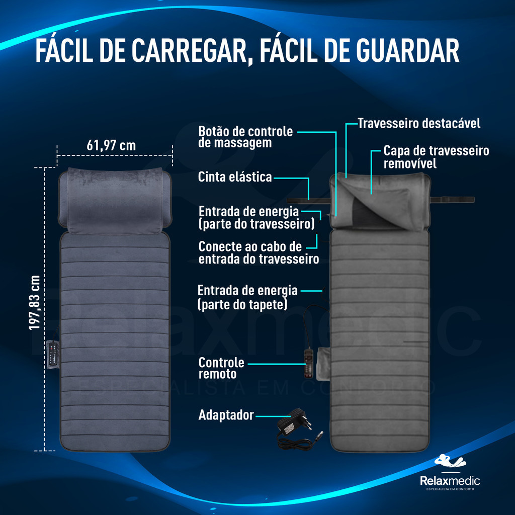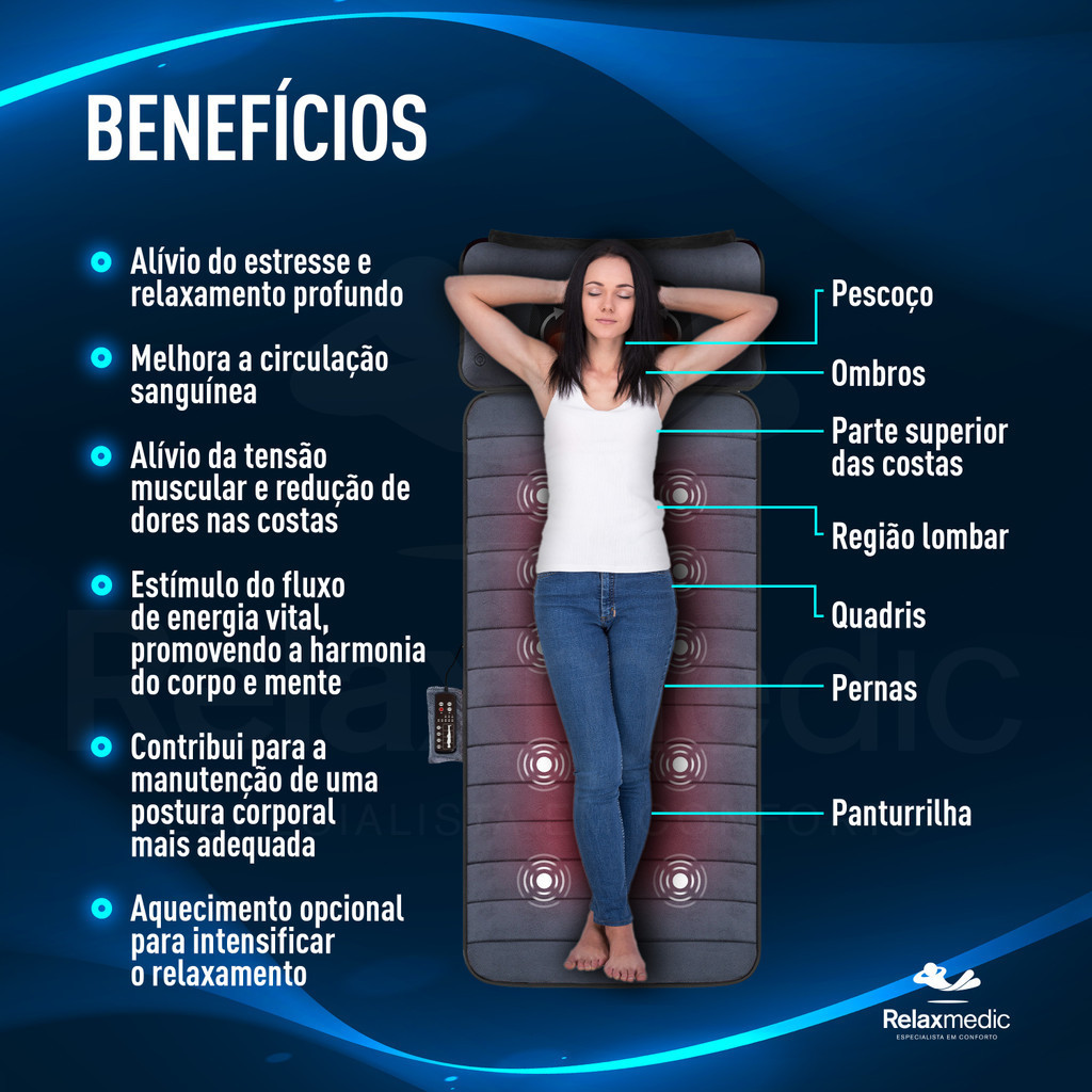 Esteira Massageadora Aquecimento Almofada Shiatsu Relaxmedic