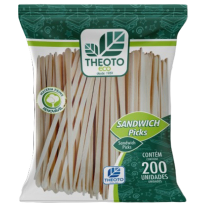 Palito Sanduíche de Madeira 9cm Theoto Eco Pacote 200 Unidades