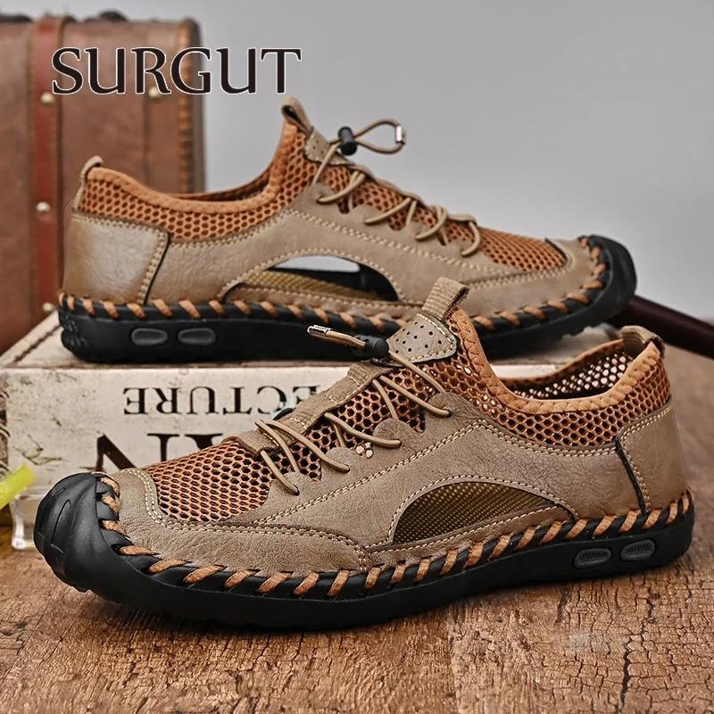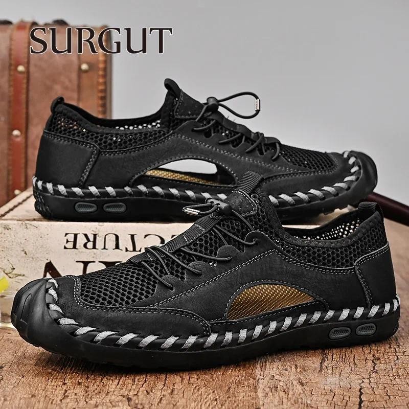SURGUT Novo Verão Sandálias Masculinas Artesanal Malha De Couro Respirável Macio Antiderrapante Moda Casuais Tamanho 38-