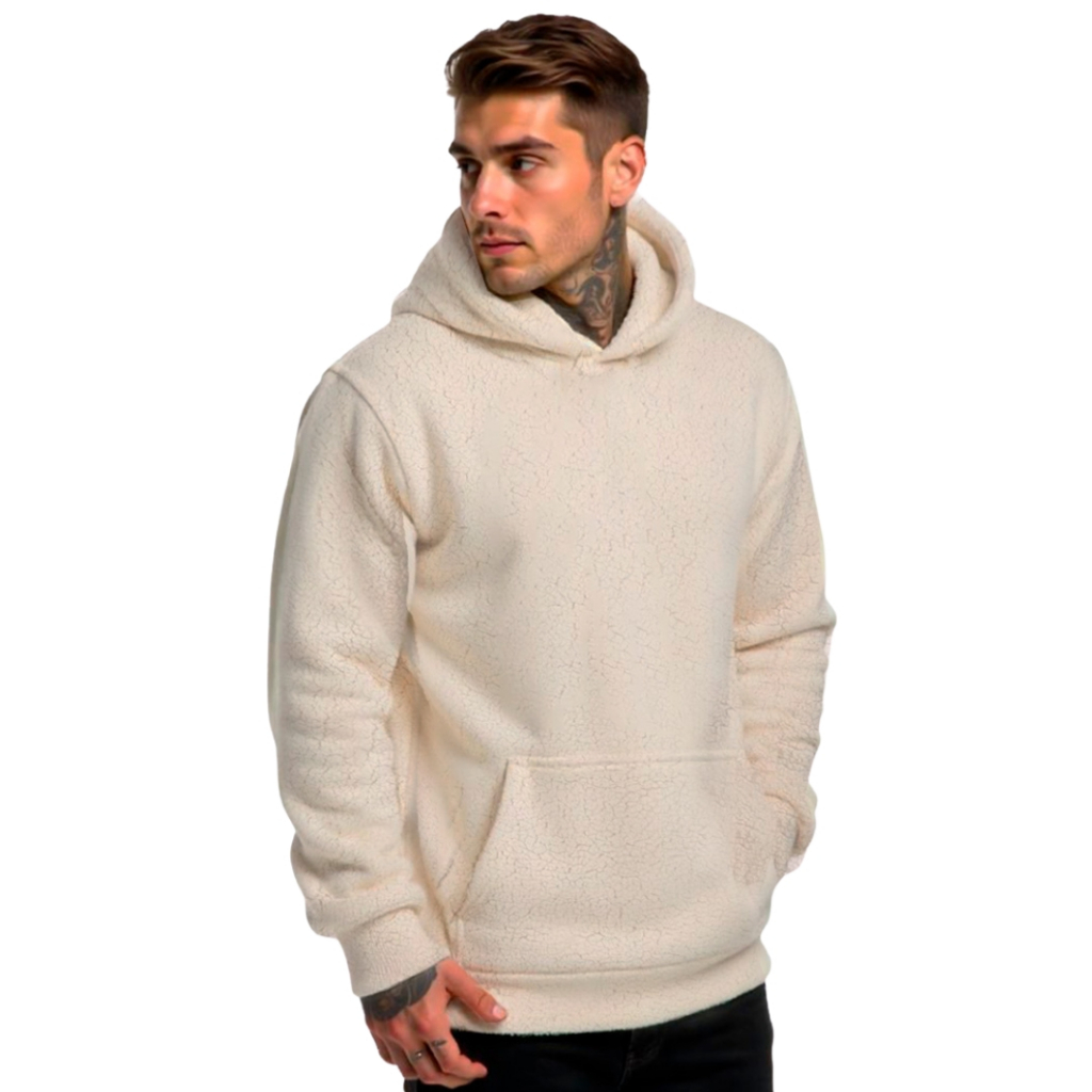 Canguru Blusão Casaco Teddy Masculino Duplo Com Bolso e Capuz