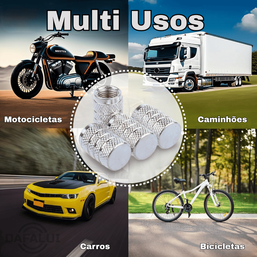 kit 2 Tampinha Tampas Da Válvula Pneu Bico de Metal Alumínio Carro Biquinho, Moto Bicicleta Prata PR