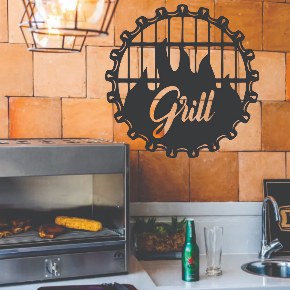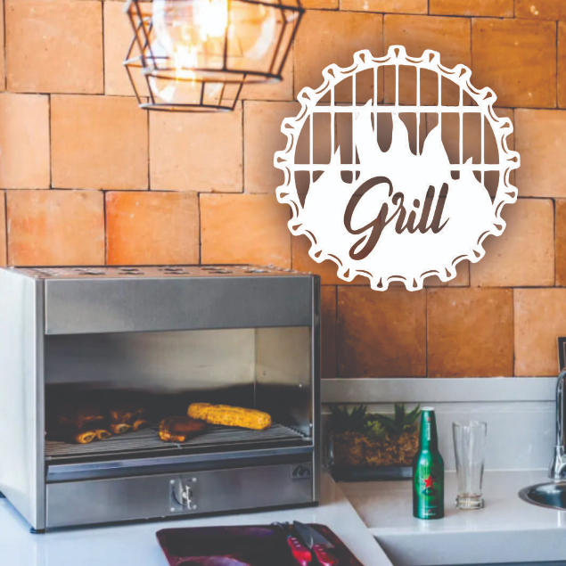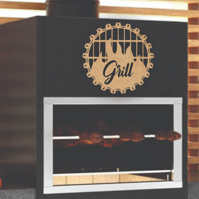 Quadro Decorativo em MDF 3MM Grill Redondo Churrasco Decoração Gourmet Cozinha Chef Churrasqueira